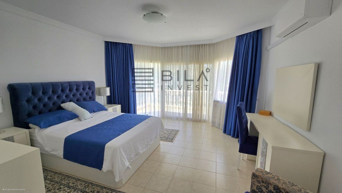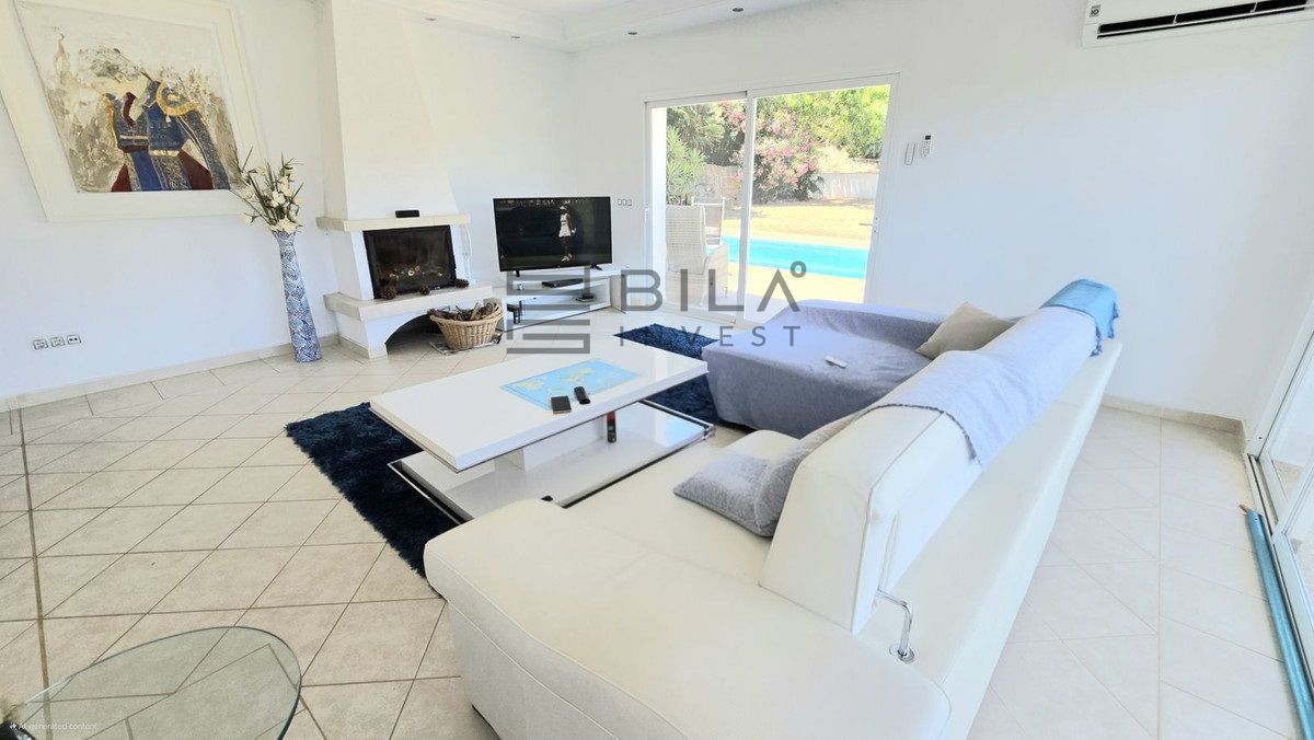 THE LIVING AREA IS TASTEFULLY DECORATED, WITH WRAP AROUND SLIDING DOORS GIVING LIGHT, LEADING TO A LARGE TERRACE SURROUNDING THIS FLOOR WITH AMAZING VIEWS OF THE POOL AND GARDENS.