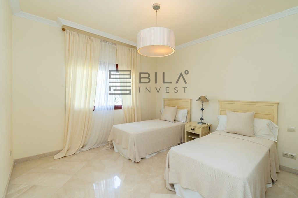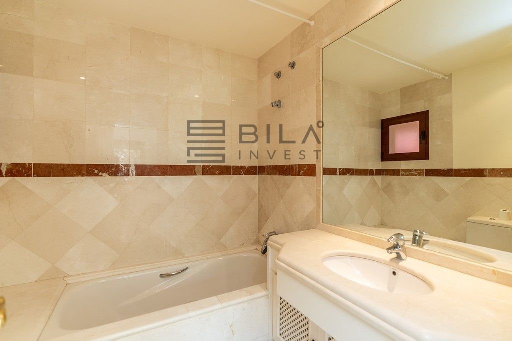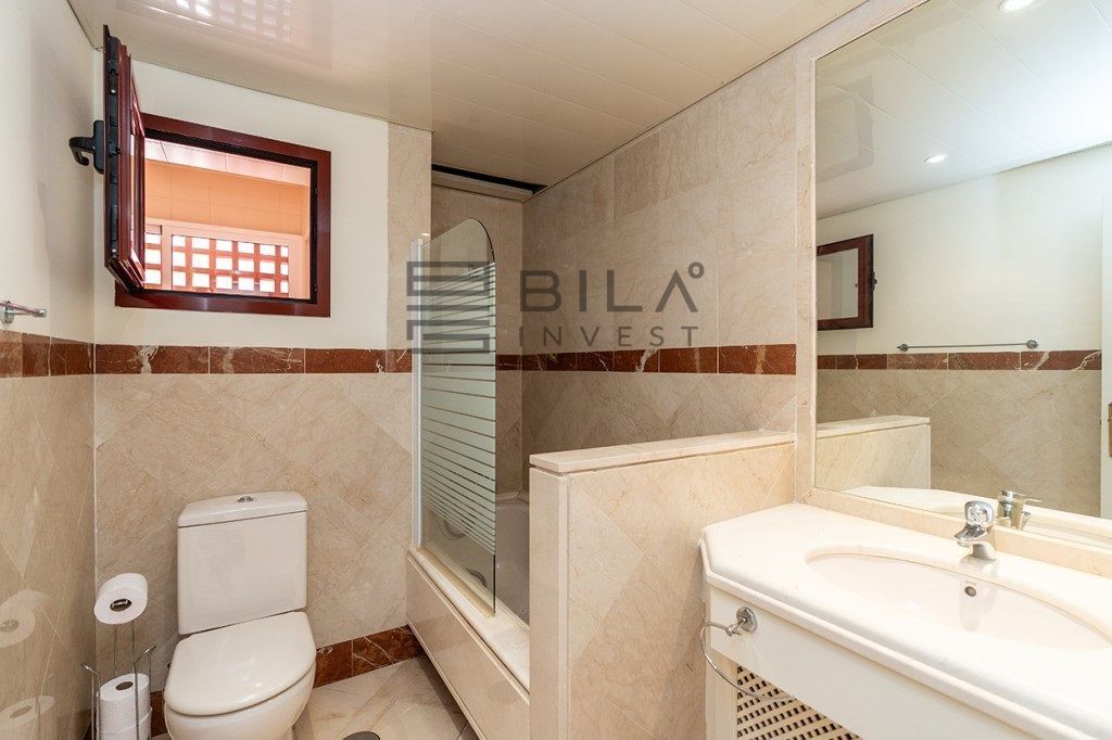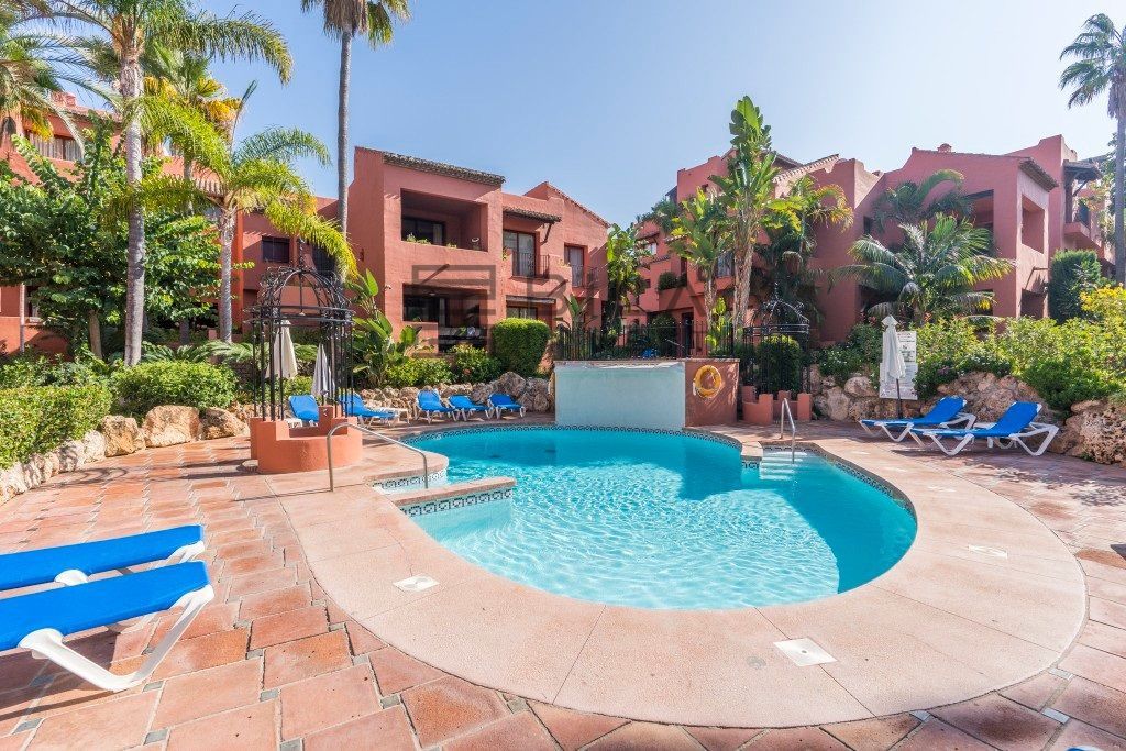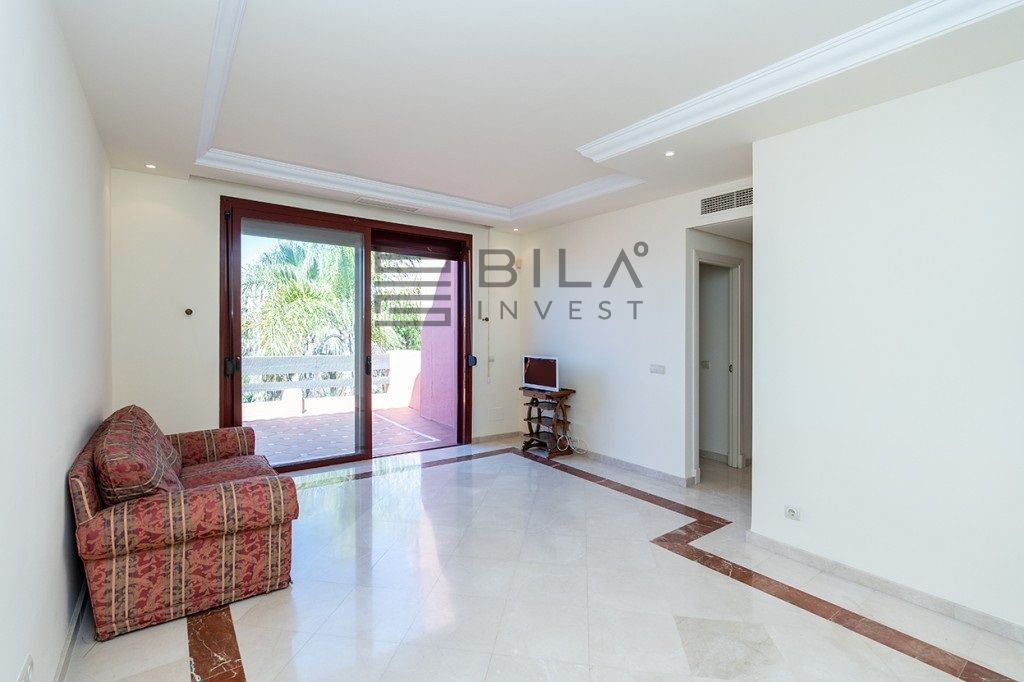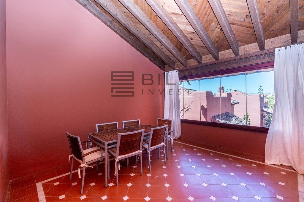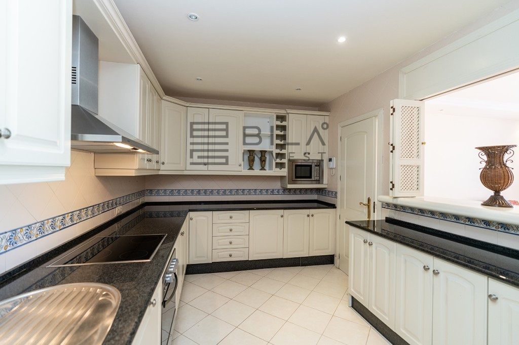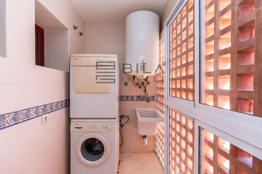 Ample and bright top floor apartment in Elviria Playa in East Marbella offering three bedrooms, two bathrooms, a glazed and covered terrace, bright living room with access to terrace and a very large fully equipped kitchen with separate laundry room. Equipped with marble floors, AC hot and cold, awning, blinds, underground parking space and storage room. Lift. Complex with three pool areas, a small gym with sauna and within a small walk from the beach and all local amenities.