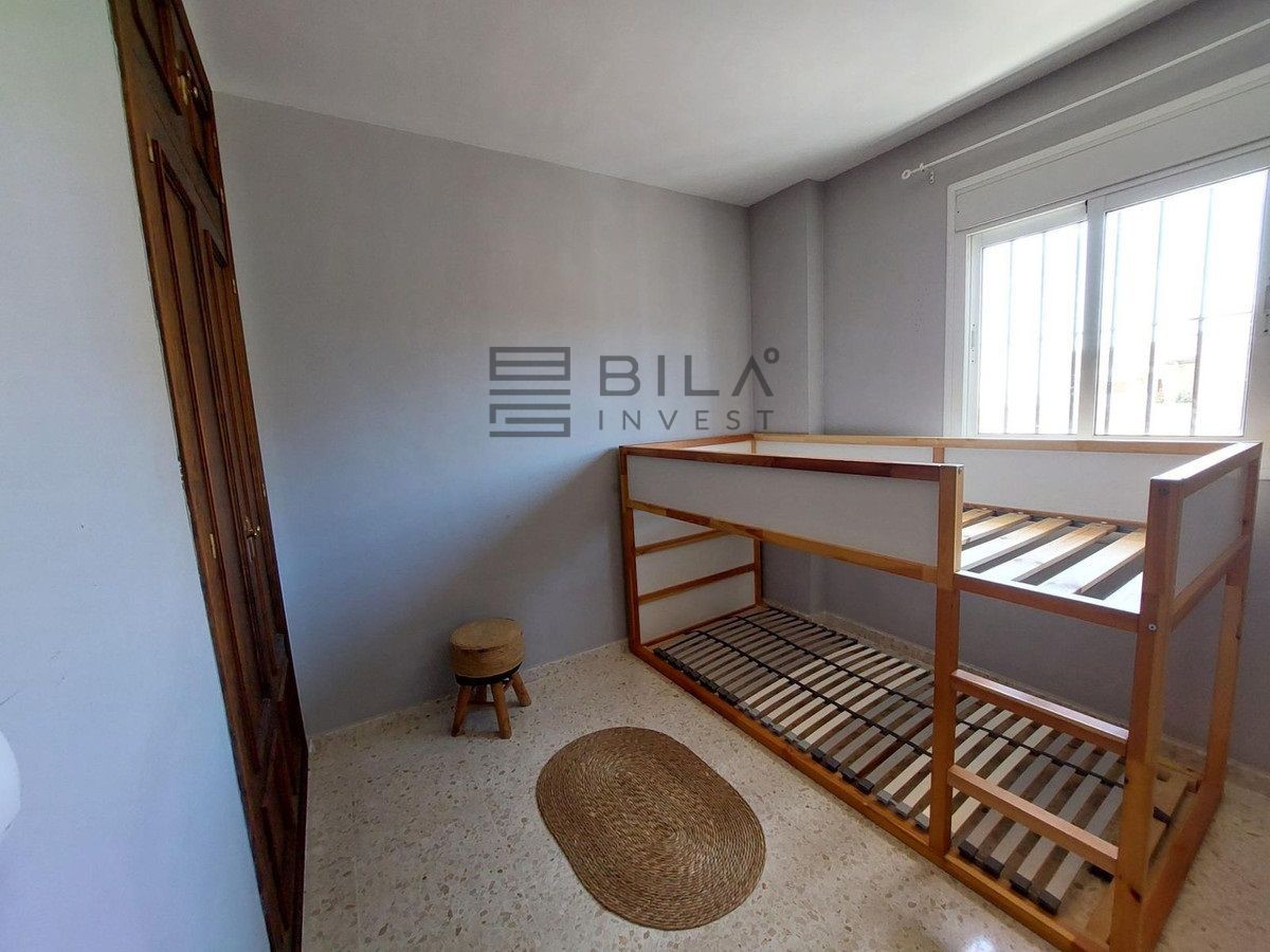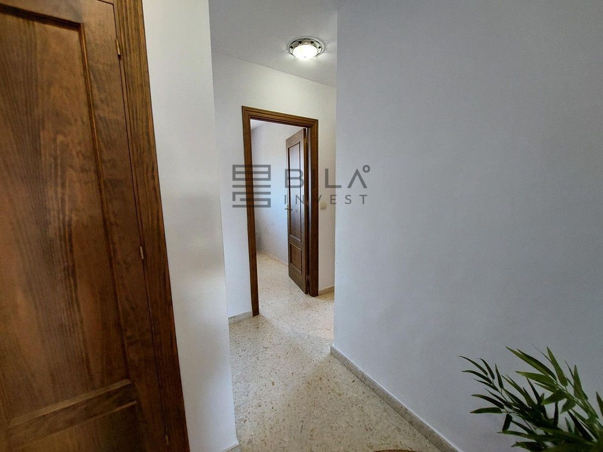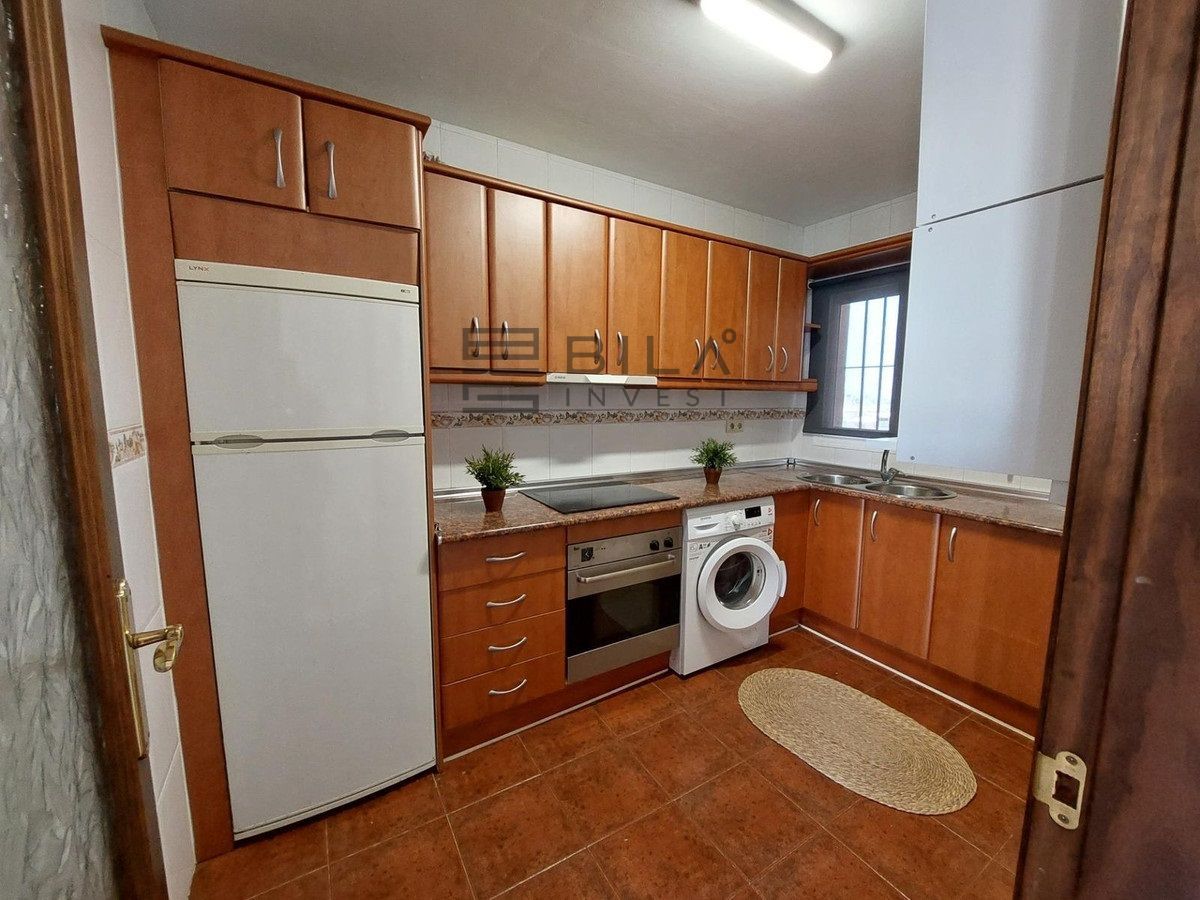 Upon entering, we access an entrance hall with built-in wardrobe, which leads to a hallway. To the right, we find a bedroom with built-in wardrobe and ceiling fan, followed by a fully equipped independent kitchen, with butane boiler and window to the outside. At the back, there is a spacious living-dining room, very bright, with direct access to the private terrace, ideal to enjoy the good weather.