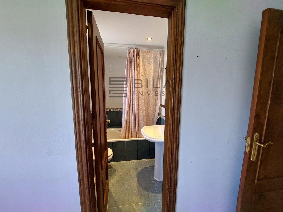 To the left of the entrance hall, there are two additional bedrooms, both with built-in wardrobes and ceiling fans. Furthermore, the property has two complete bathrooms: one with a shower and the other en suite with a bathtub.