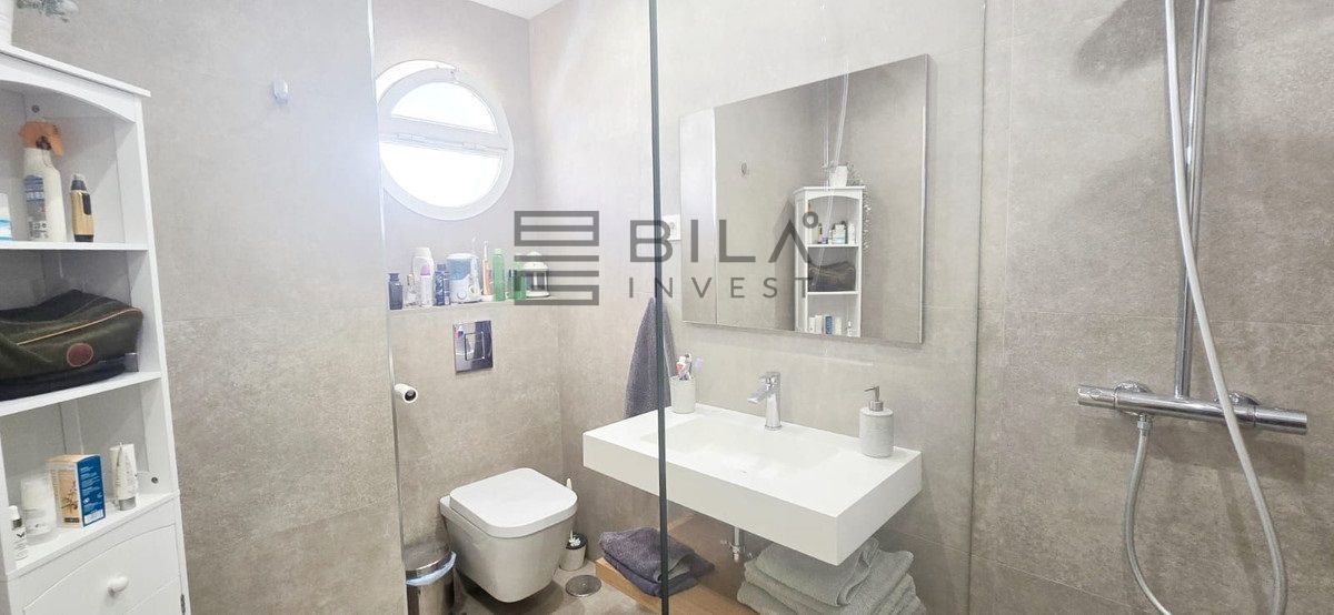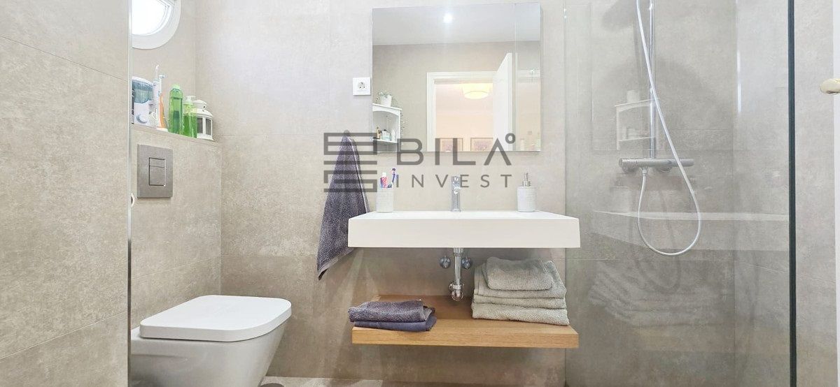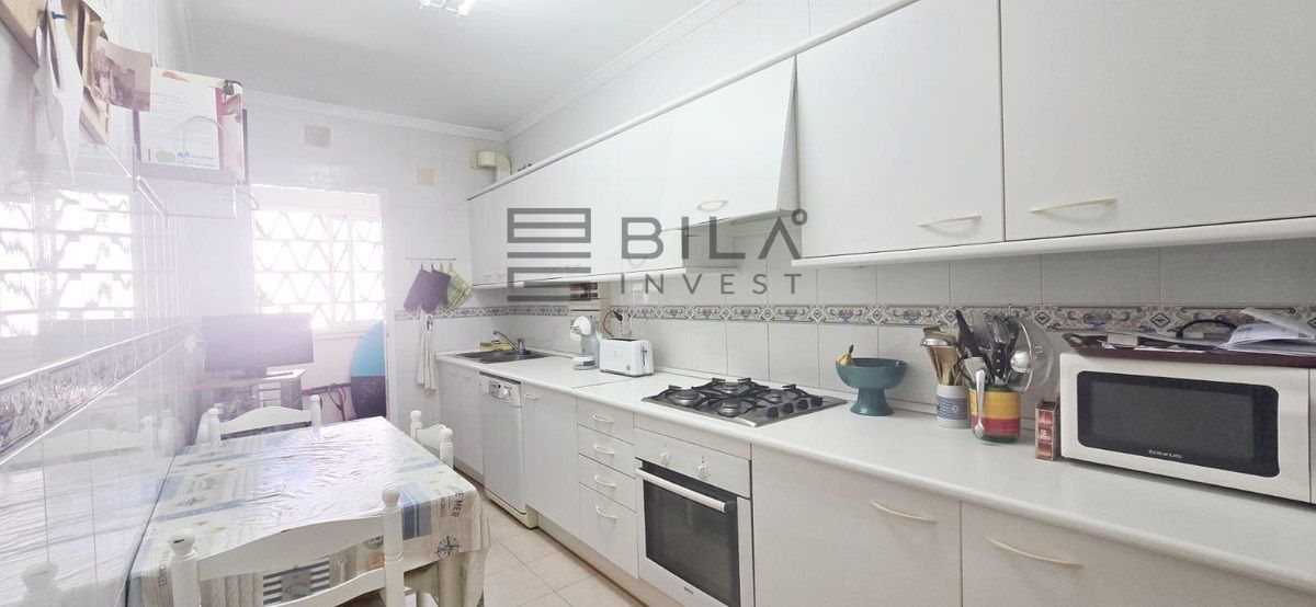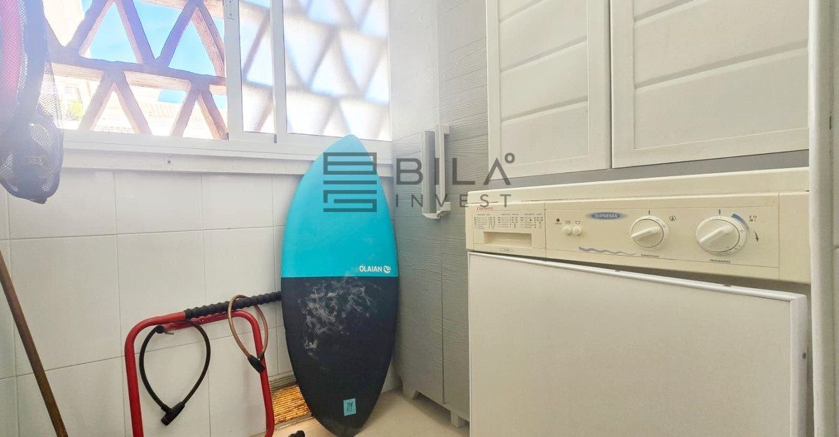 The layout is very functional: a spacious living room with access to a terrace with open sea views, independent kitchen with utility room, and four bedrooms, all with fitted wardrobes. The master bedroom includes an en-suite bathroom, and there is also a second bathroom, both fully renovated.