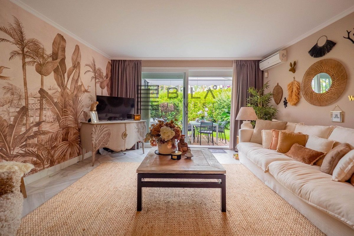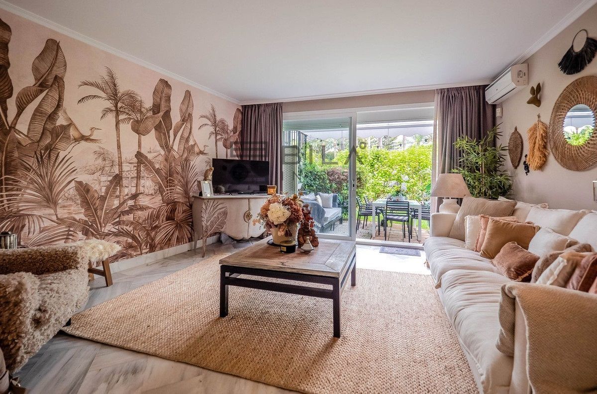 We are pleased to offer this ground Floor apartment in an upmarket development beach side in Elviria. The apartment has been Interior Designed and is tastefully furnished, and a small private garden allows direct access to the stunning tropical gardens and pools, one being heated for the cooler months of the year. The apartment has a large lounge and access to the terrace and garden, fully fitted kitchen guest cloakroom and large master bedroom with walk in wardrobe area and main bathroom. Also included is underground parking space and storage.