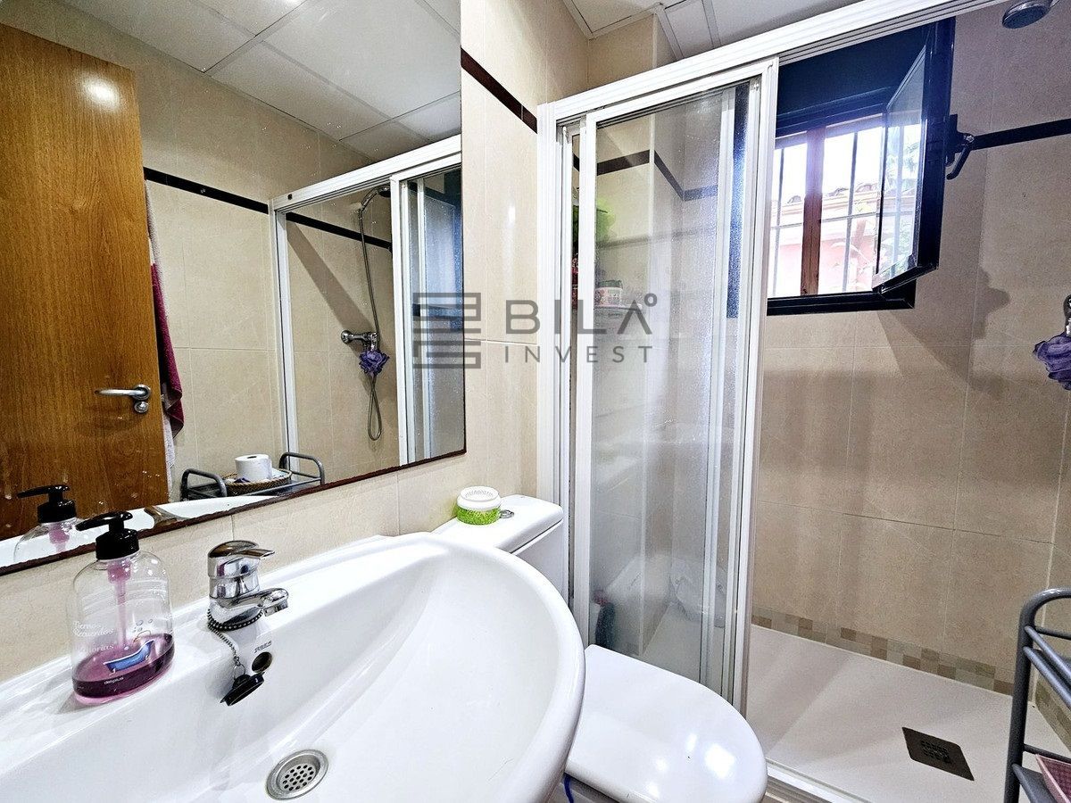There are 2 large bedrooms and 2 full bathrooms. The master bedroom enjoys an ensuite bathroom with bathtub, while the second bathroom has a shower. Both bathrooms have windows as the apartment is a corner unit, hence the amazing wrap around garden with 3 avocado trees, Nispero tree, lemons trees and a lime tree! The sitting room and dining room have access to both terraces, one overlooking the pool while the other opens up to the extensive private garden with handy direct access to the pool, ideal for families.