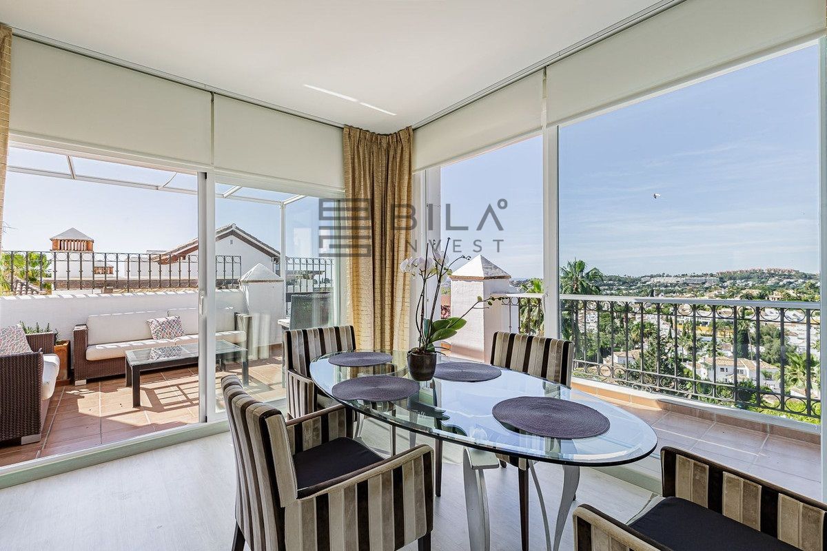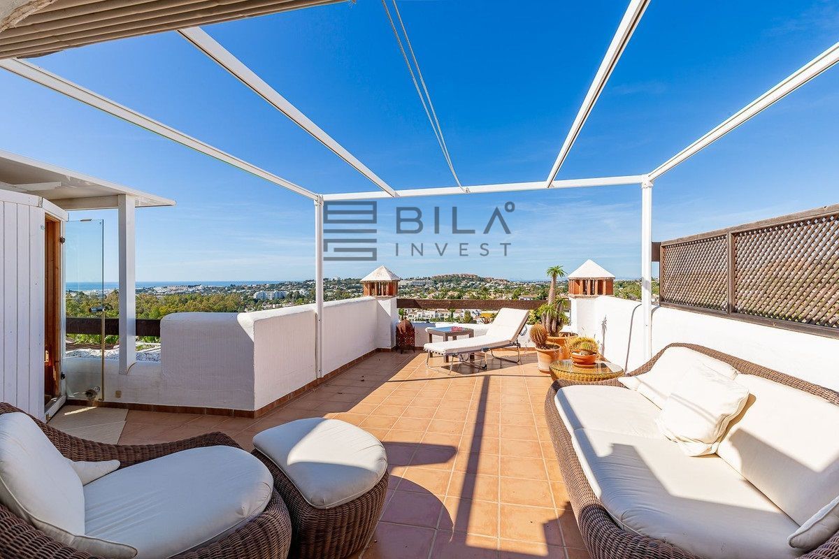 A fantastic penthouse duplex apartment with stunning views over the ocean, mountains and beautiful surroundings of Nueva Andalucia.