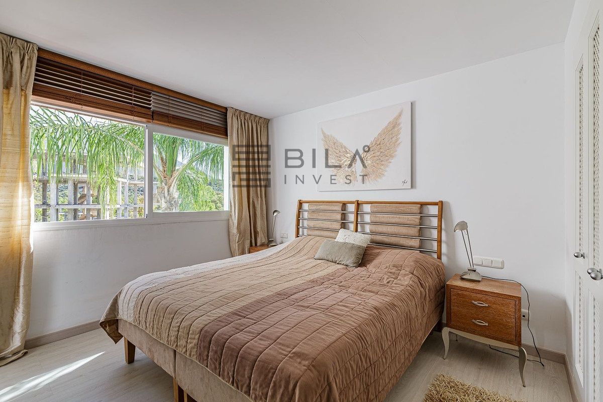 The south west-facing orientation and the generous part of glass walls and windows ensures a maximum of sunlight and creates a bright and light feeling throughout. The kitchen is recently renovated and fully equipped with high quality fixtures. Next to the kitchen there's a separate laundry room. The property offers a lot of space, built in wardrobes and a storage.