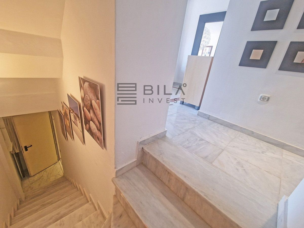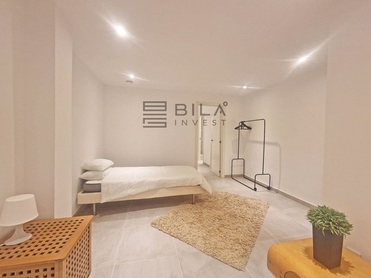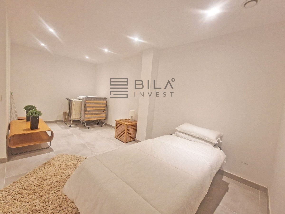 The property features 4 bedrooms and 3.5 bathrooms, distributed across two main levels, a spacious rooftop solarium, and a brand-new underground guest apartment with private access and garage. Being a corner house, it enjoys the largest terrace of the complex, wrapping around the side and maximizing outdoor living space.