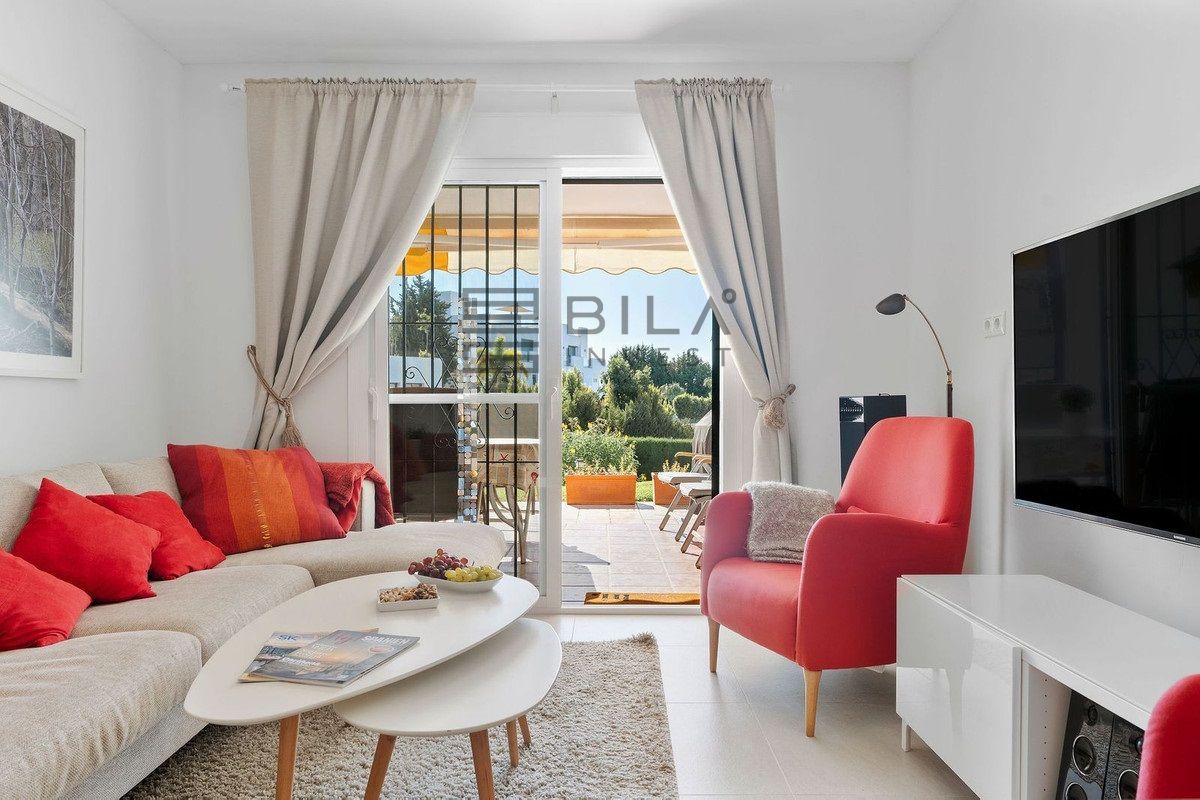 We are delighted to present a refurbished ground floor apartment in the most desirable block of the complex. This unit enjoys direct views of the swimming pool and even a glimpse of the sea. Inside, the property has been tastefully modernized, including the addition of a second bathroom. The open-plan living room and kitchen create a bright, social space, perfect for both everyday living and entertaining.