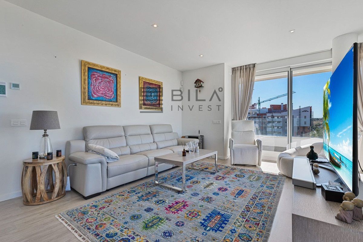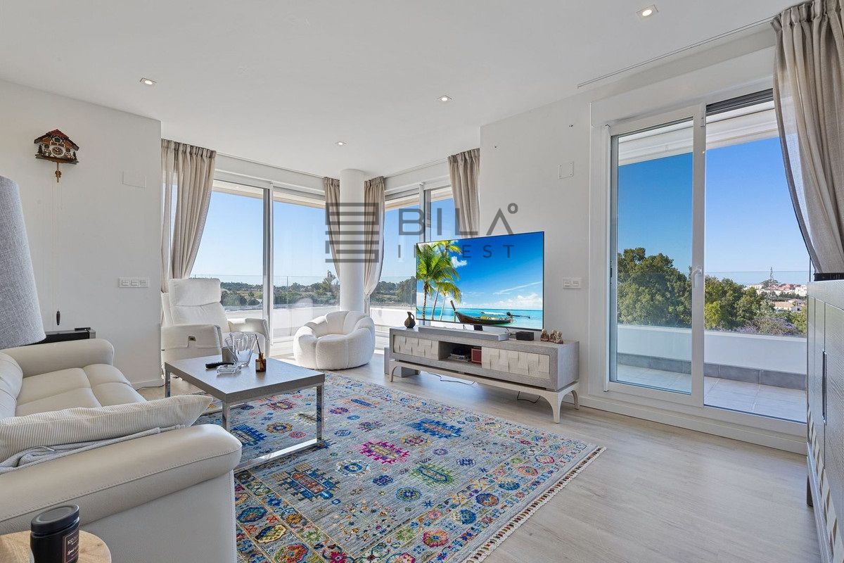 Designed with comfort and aesthetics in mind, the apartment boasts a spacious southwest-facing terrace with open views and partial sea glimpses, the ideal setting for afternoon sun, al fresco dining, and enjoying the soft Mediterranean breeze.