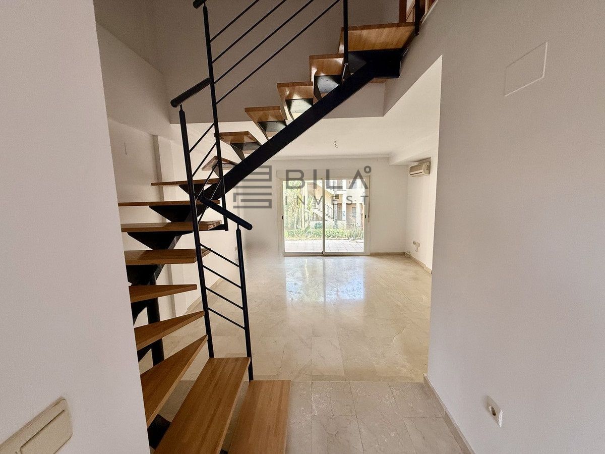 Lower duplex in Riviera del Sol with a floor area of 90 m², distributed over 45 m² on the ground floor and 45 m² on the upper floor. The ground floor has a living-dining room with access to a private garden, a toilet, a laundry room, and an unfitted separate kitchen, with the option of integrating it into the living room. Upstairs there are two bedrooms with fitted wardrobes, two full bathrooms with windows (one with a bathtub and the other with a shower), an additional fitted wardrobe in the hallway, and a terrace with side views.