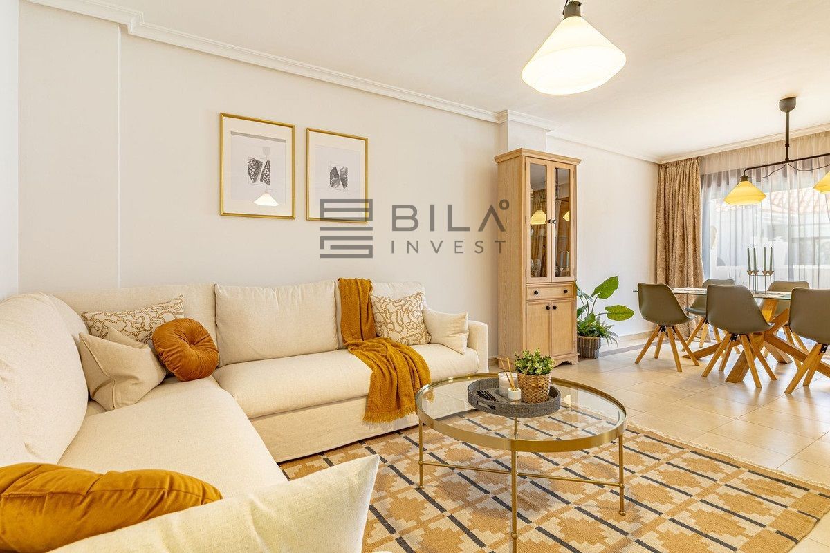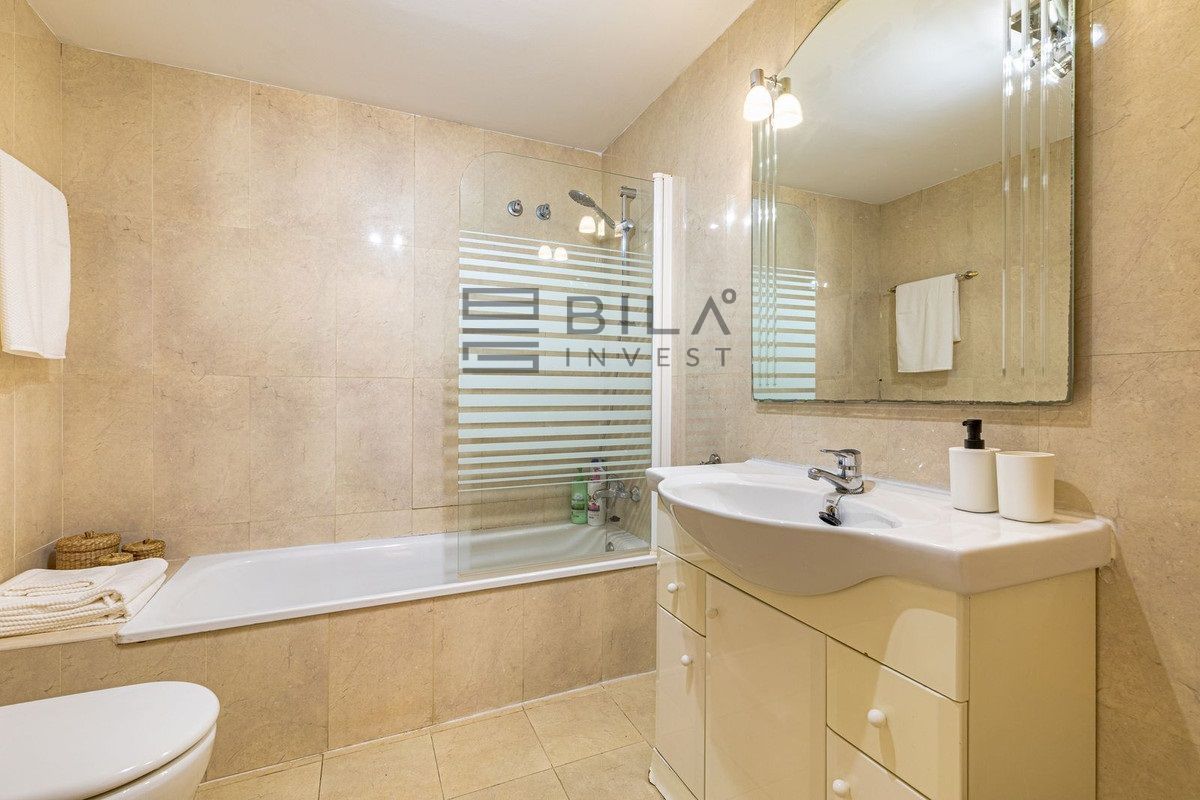 The apartment is part of a well-maintained urbanization featuring two communal swimming pools – one large and one smaller – ideal for cooling off on warm summer days. A garage space is also included in the price.