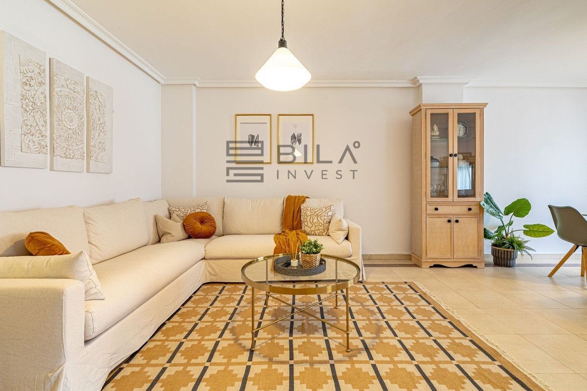 Apartment for sale in Urb. Jardines de las Lagunas, Mijas Costa, with 135 m2, 3 bedrooms and 2 bathrooms, swimming pool, garage, elevator, furnished and air conditioning.