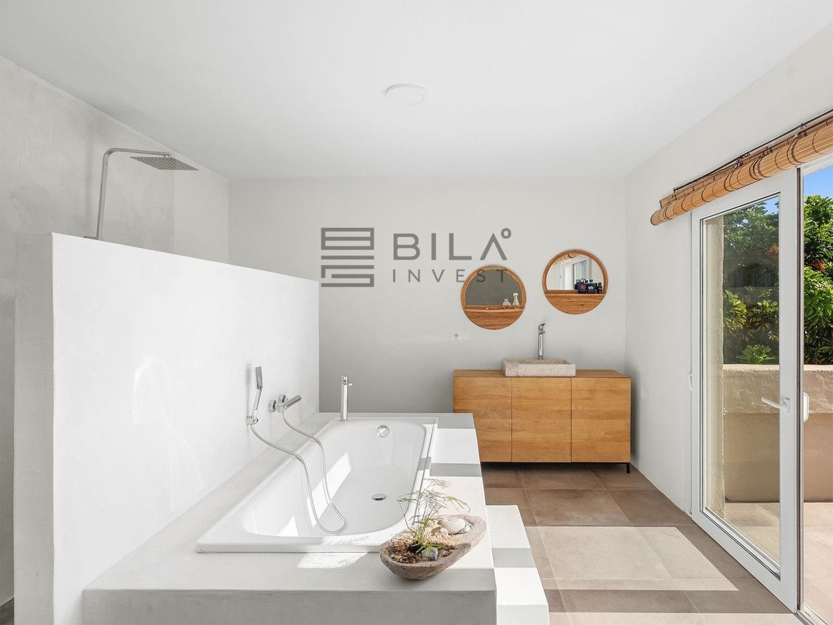 Inside, the villa features 2 bedrooms, easily posible to add one and change into 3 bedrooms, 2 bathrooms, including a spacious master suite with a true hotel-style vibe, your own private retreat. The bright and open layout creates a welcoming atmosphere, ideal for both relaxing and entertaining.