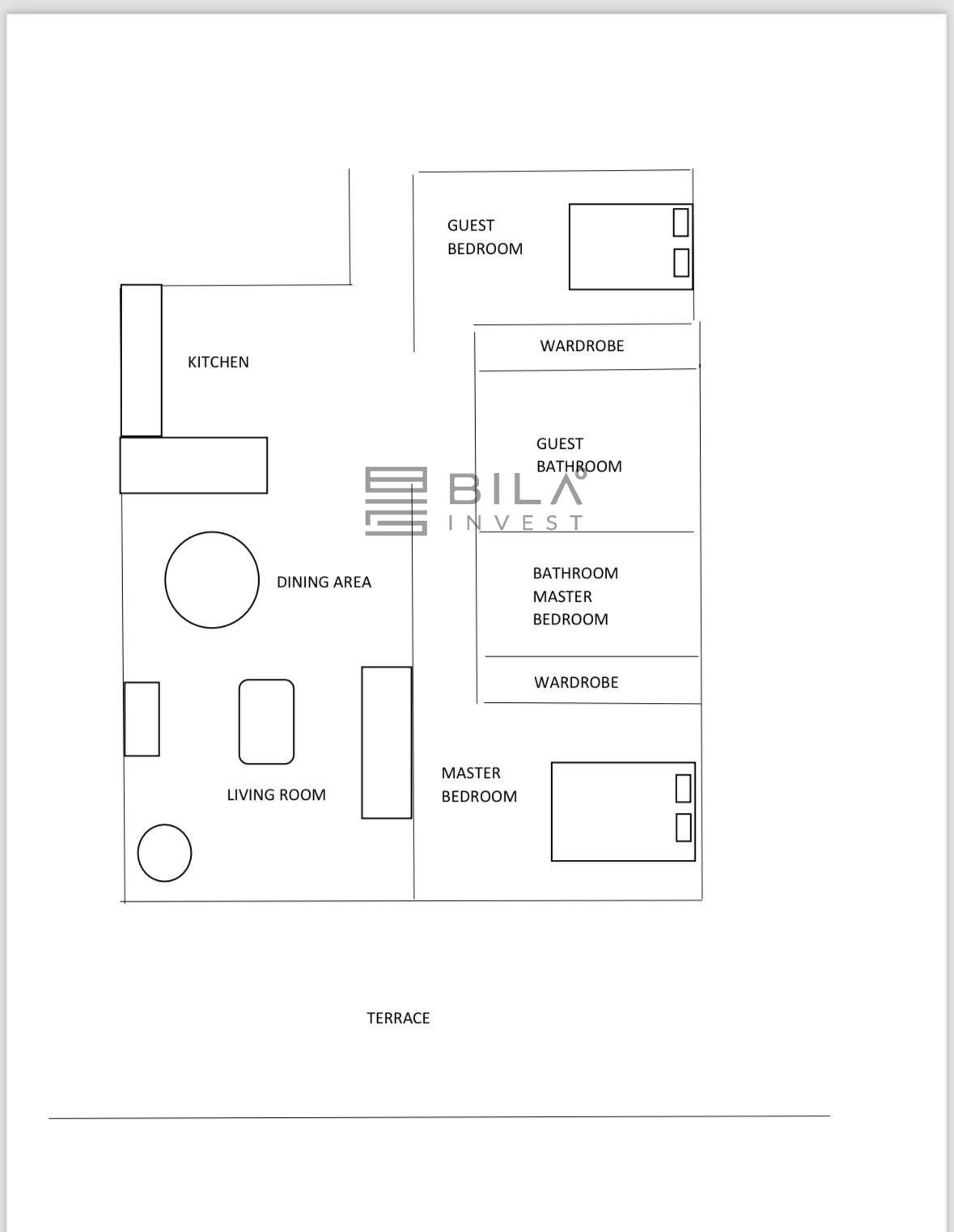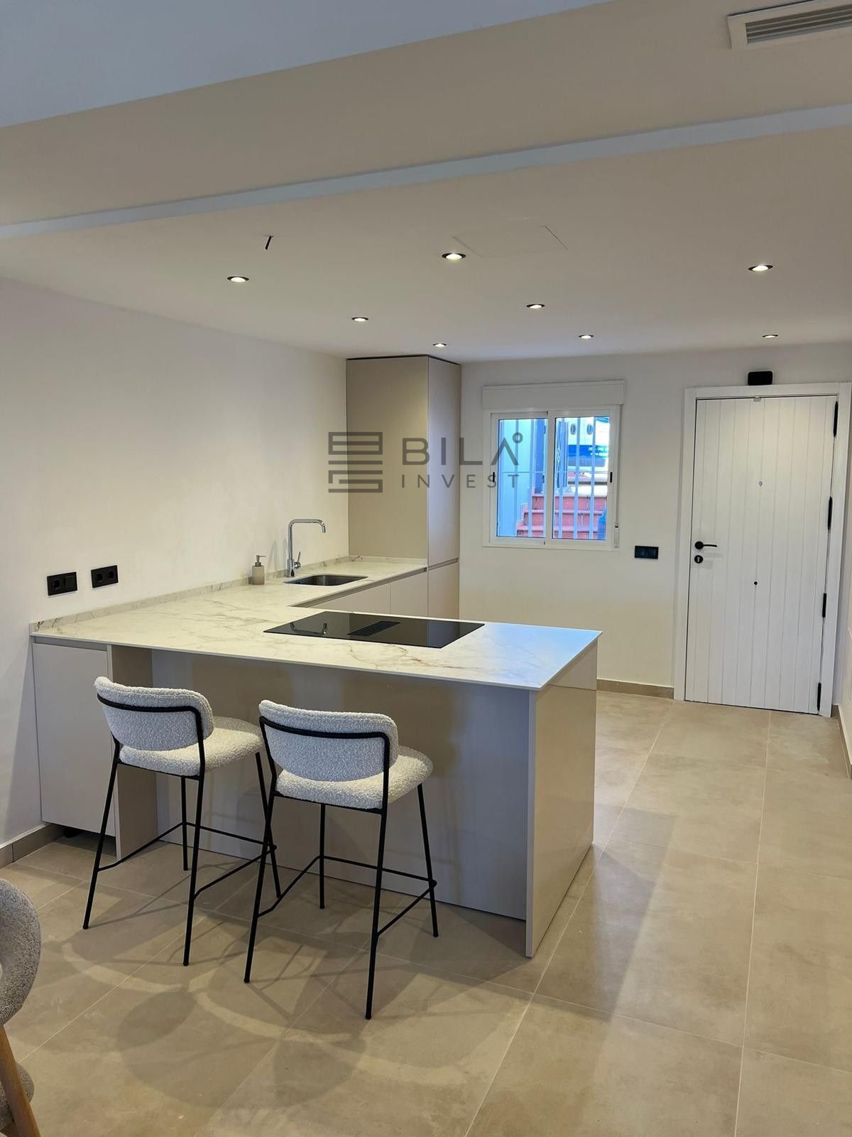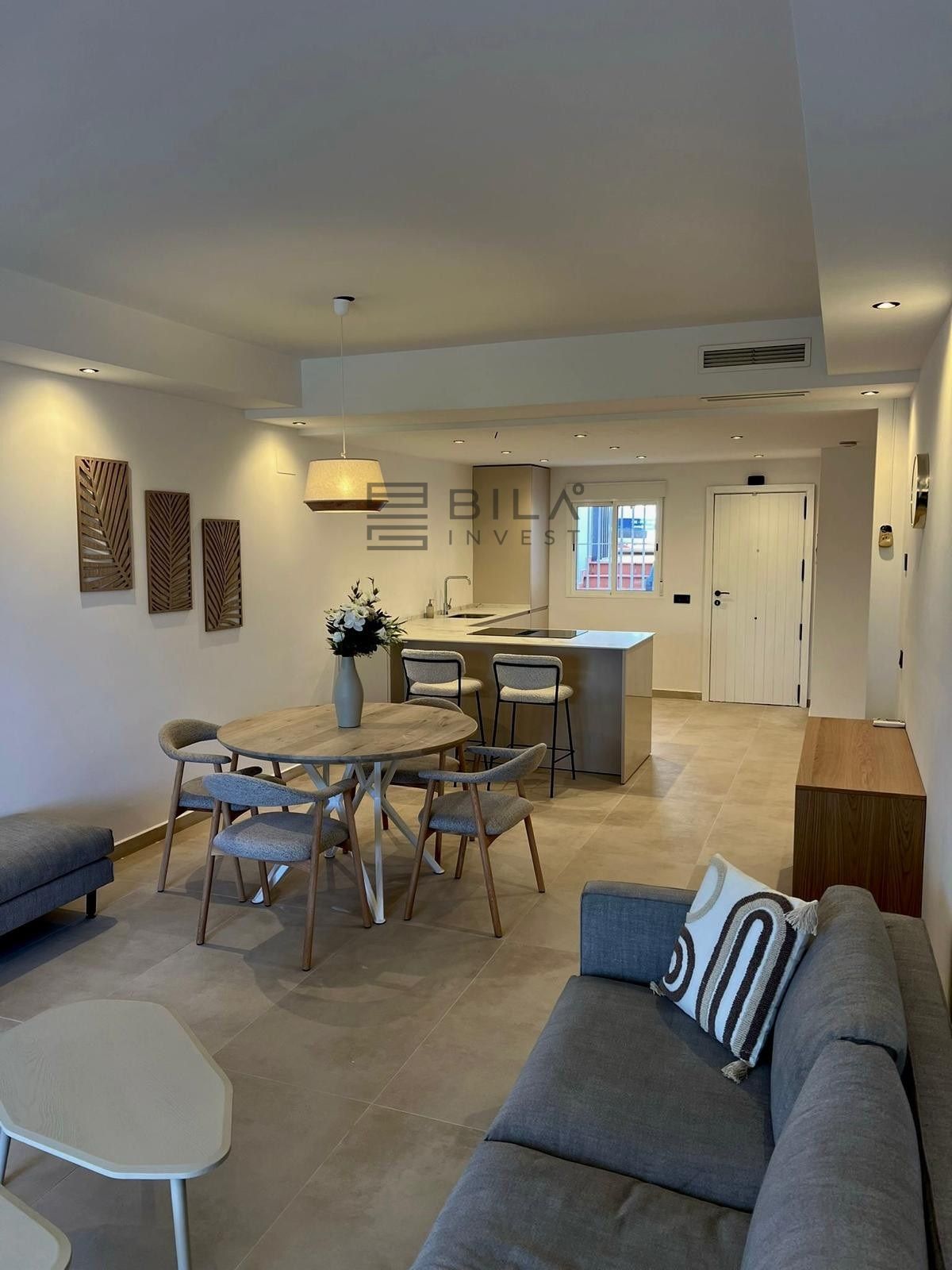 The apartment features two bright and comfortable bedrooms, a modern bathroom, and an open-plan living area that seamlessly connects to the terrace. Every detail has been carefully designed to create a warm and welcoming atmosphere.