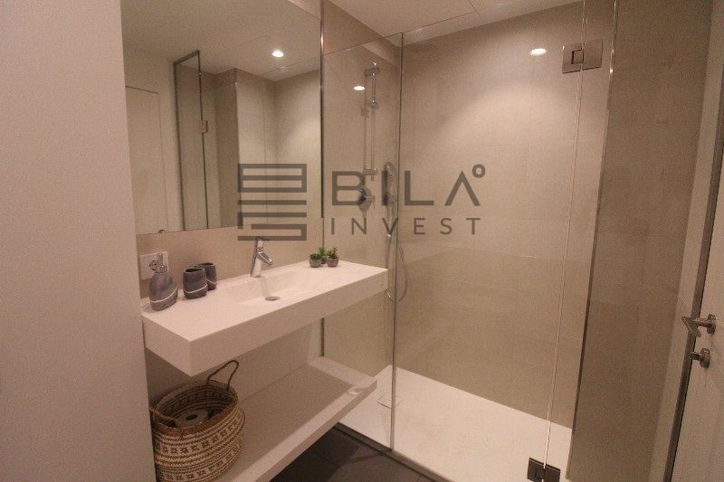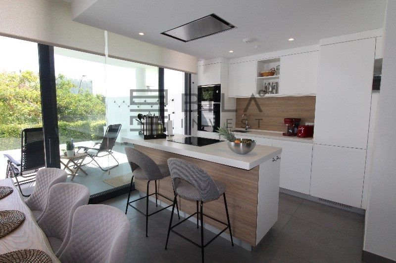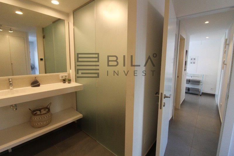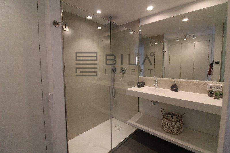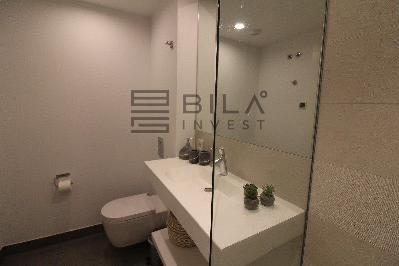 The apartment has a total of 64m2 of terrace, where the one from the living room kitchen is slightly covered. There is also a small grass at the end of the terrace. There is an indoor car park and an outdoor one that belongs to the apartment, as well as a storage room which is also a good size.