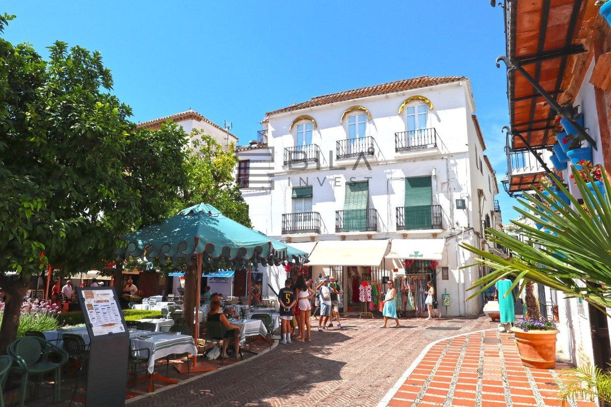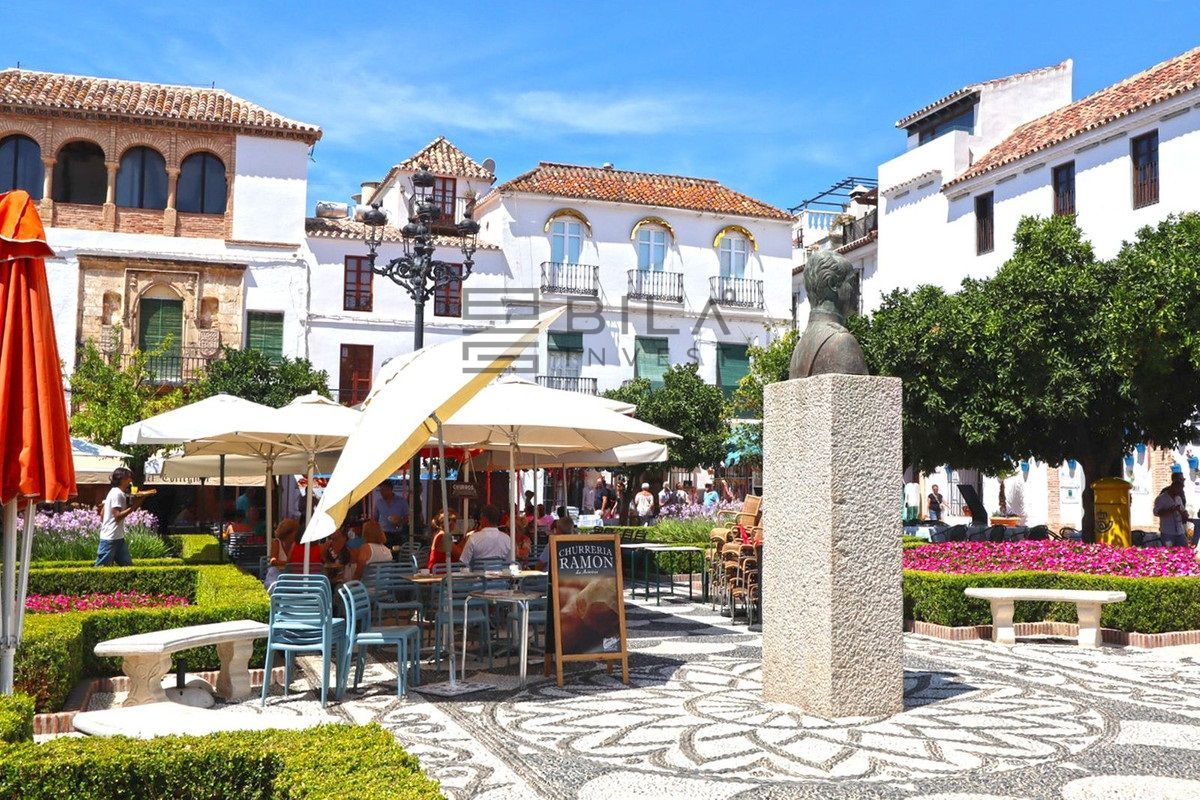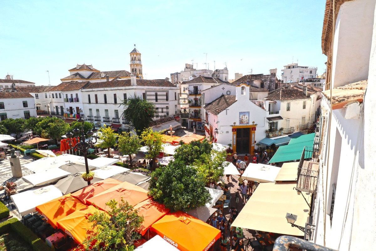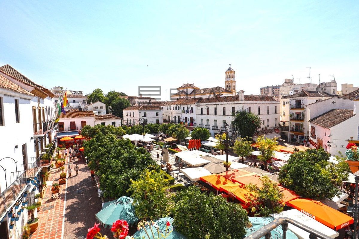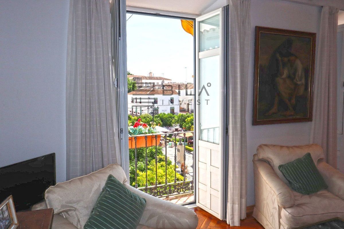 Unique and unrepeatable purchase opportunity. Exclusive elegantly furnished apartment for sale, located in the historic center of Marbella and with wonderful views of its emblematic Plaza de Los Naranjos and the Hermitage of Santiago, the oldest in the city. It has its access through the busy street of La Estación and its charming shops. Formed by the union of 2 properties on the second floor, it has all the character of a typical house in the old town and at the same time with many details and luxuriously furnished. The property consists of an entrance hall, a distributor with fitted wardrobes, a large fully fitted and equipped kitchen, a large living room with access to 3 balconies with wonderful views of Plaza de Los Naranjos, 2 bedrooms and 2 bathrooms, one of them on suite room. 10 m2 warehouse included in the price. Hot and cold air conditioning in all rooms. A true jewel for lovers of the old town of Marbella and its corners.