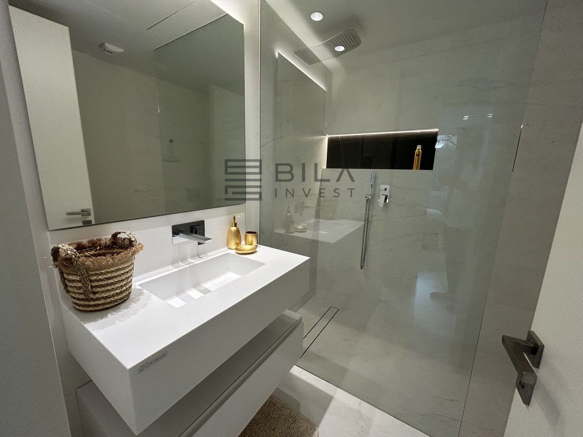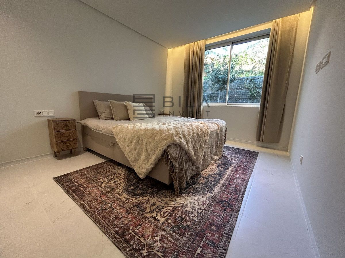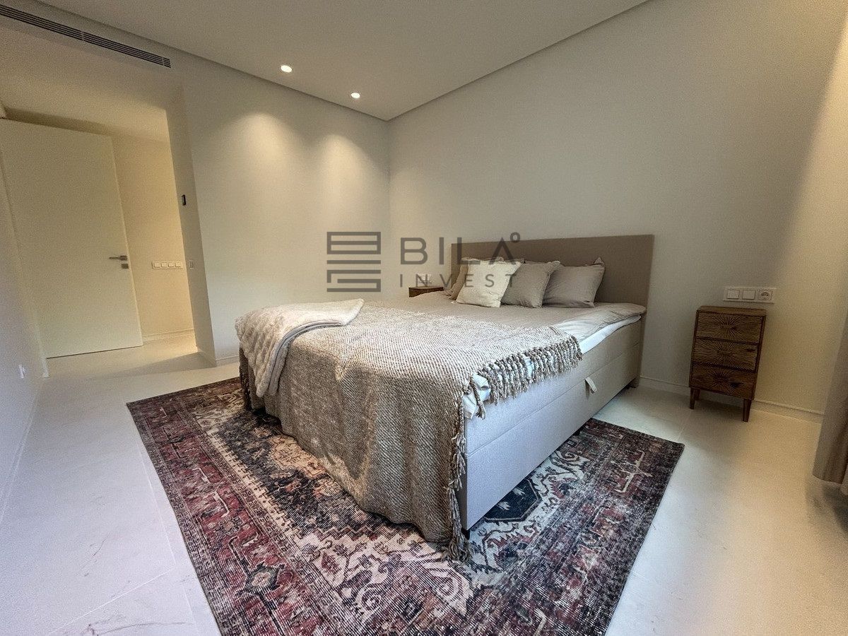 2 bedroom apartment available with southern exposure. This apartment features an open layout where the kitchen and living room open onto the terrace and you can enjoy maximum views from these areas. Moreover, the terrace is also extended by 73 m2 of private garden. The master bedroom has an en-suite dressing room and bathroom. There is also a second bathroom for the guest bedroom. Like all apartments at here, this unit is finished to a very high standard.