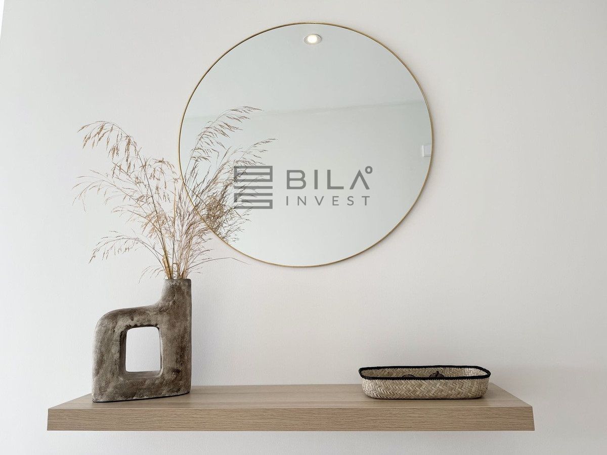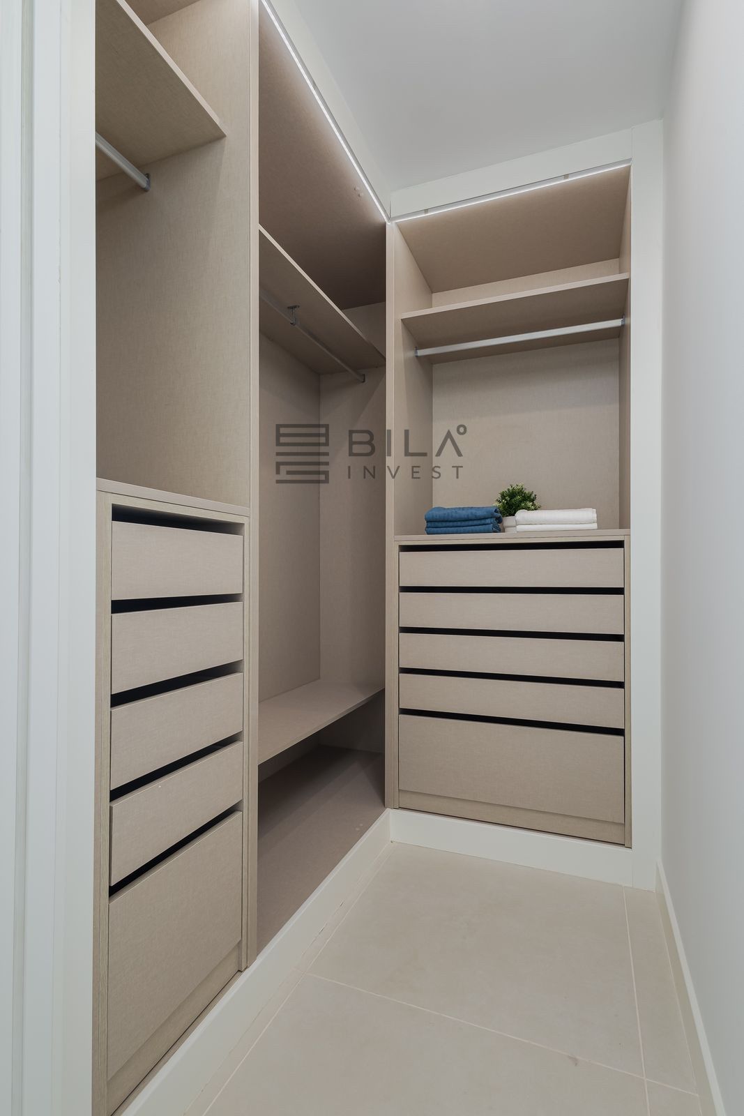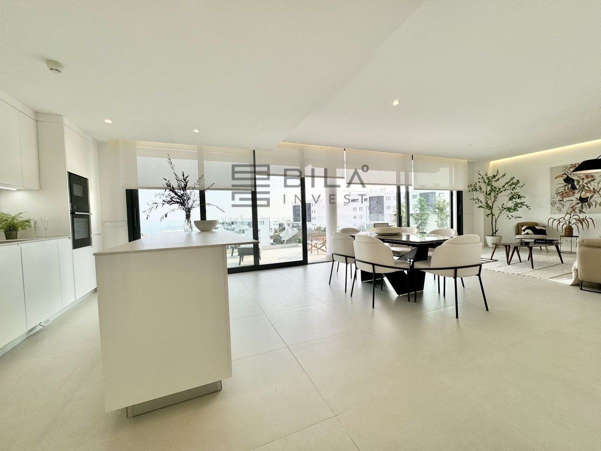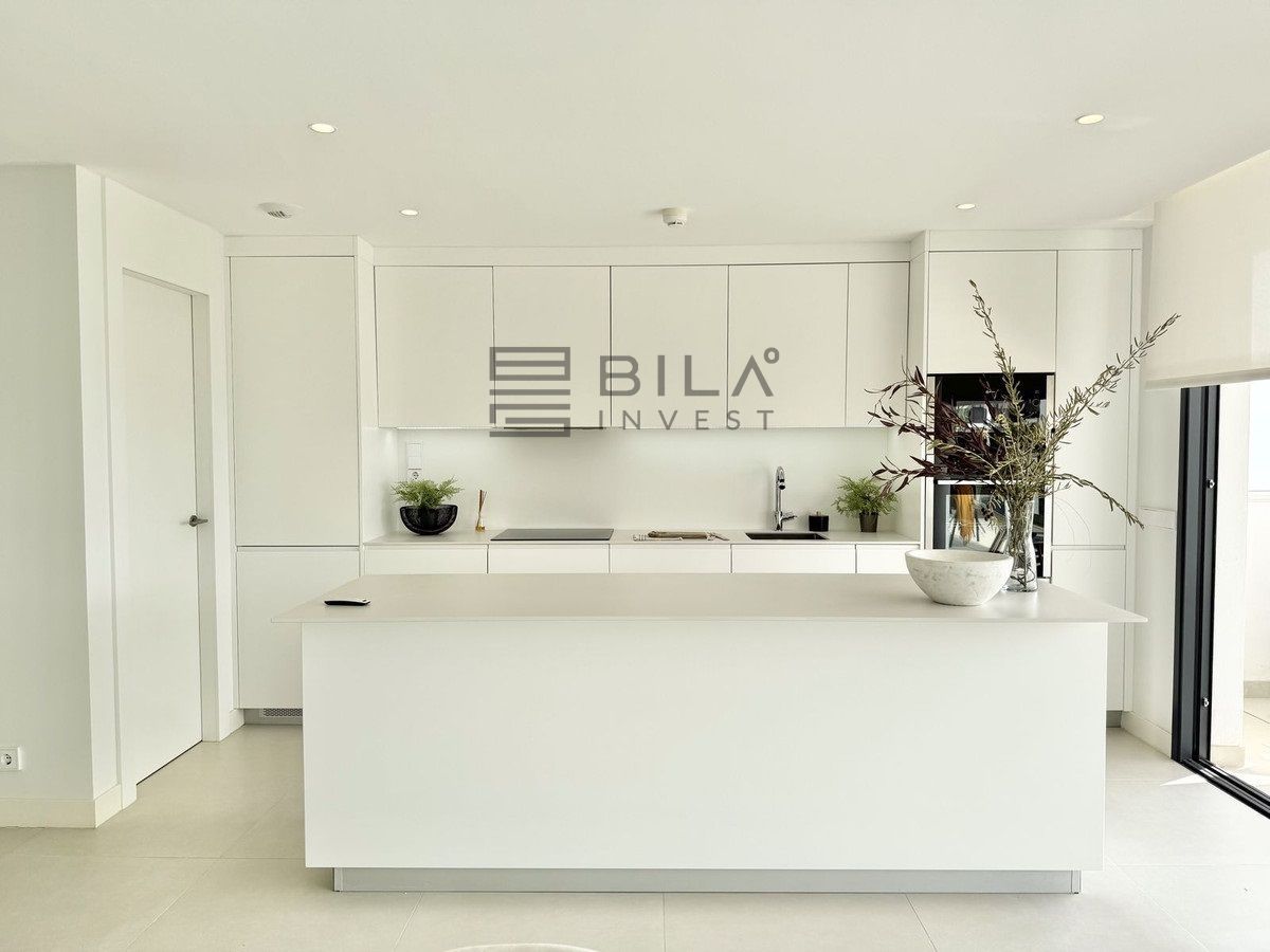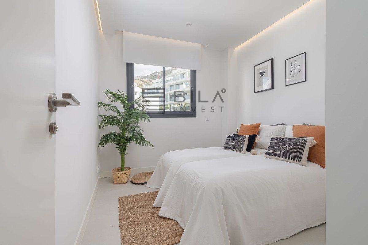 This property includes a storage and 2 large parking spaces. The apartment is surrounded by green areas and has fantastic open frontal views onto the green valley leading to the sea. The interior has been tastefully furnished and reveals a feel of space, the interior blending in nicely with the outside terrace. The master bedroom enjoys a private terrace with sea views and a walk-in closet. Extras include both outdoor and indoor electric awnings, underfloor heating in all rooms controlled from your phone via domotics., Neff kitchen appliances. Perimetral ceiling led lighting in sitting room and bedrooms.