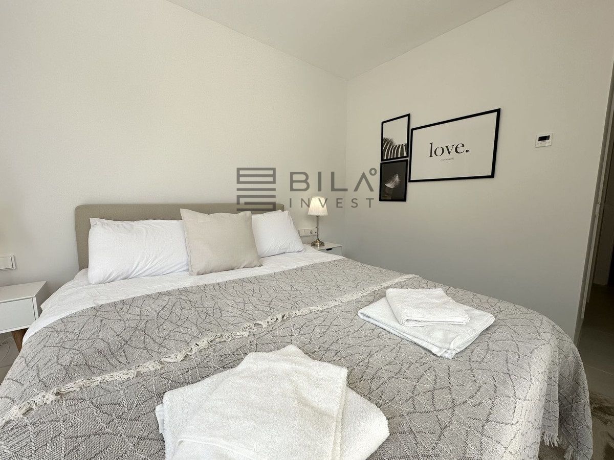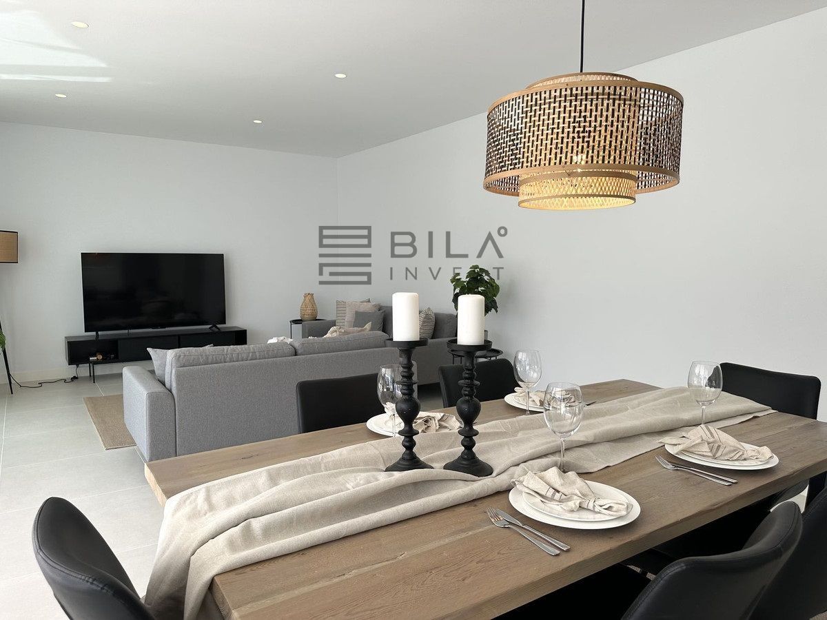 Upon entering the apartment, you are greeted by a bright and inviting hallway, equipped with built-in wardrobes for ample storage. From the hallway, you can access the spacious bedrooms or proceed directly into the open-plan living area, where the kitchen, dining room, and living room seamlessly blend into a wonderful social space.