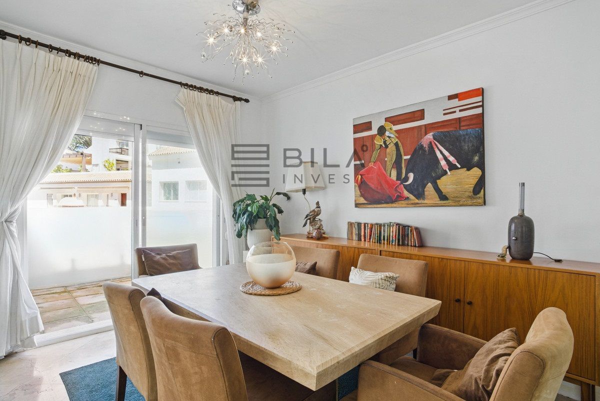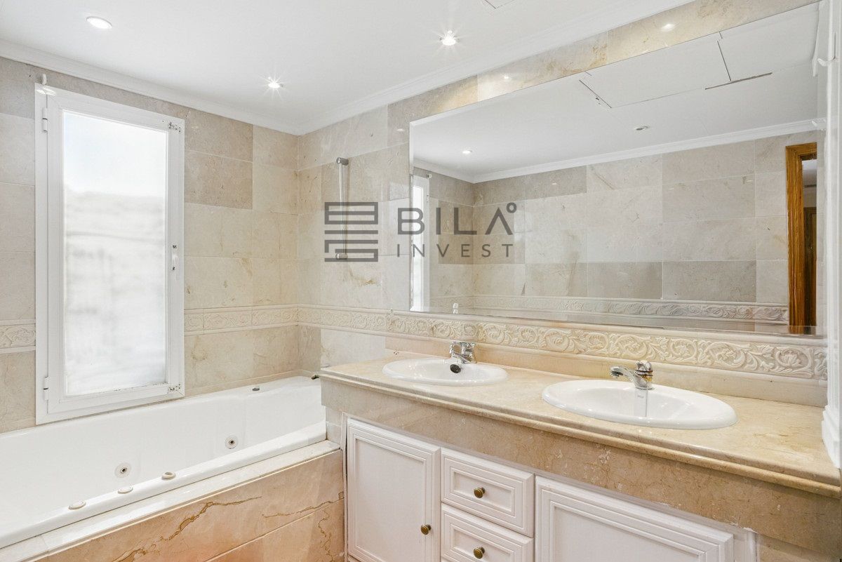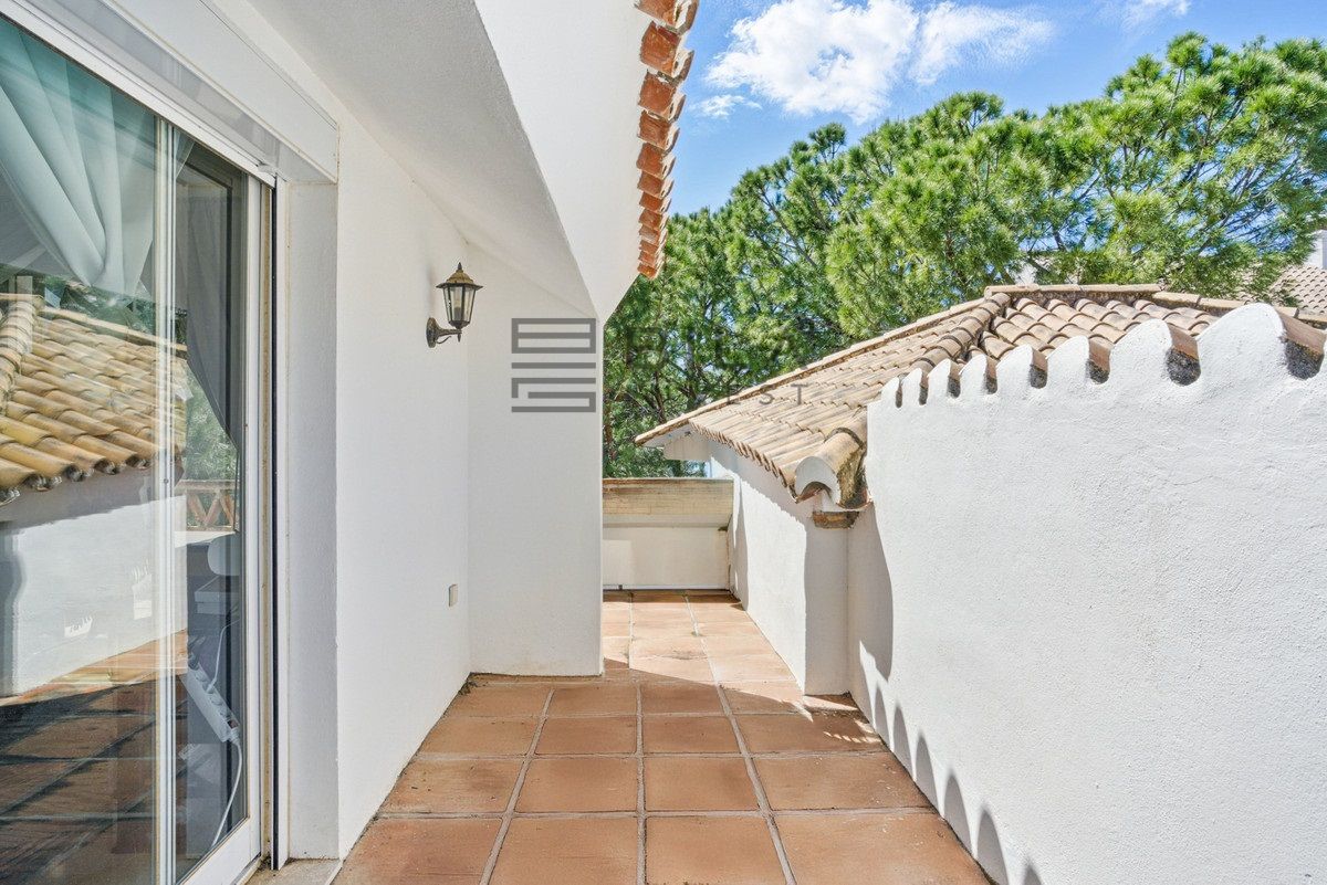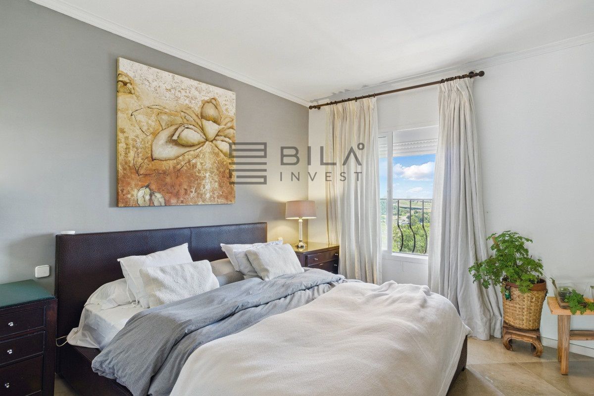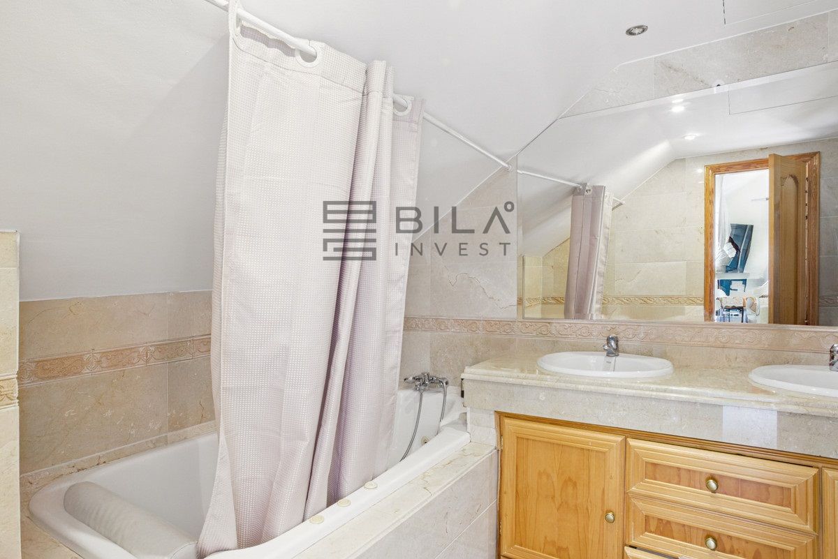 Spacious four-bedroom, duplex penthouse in the Los Pinos de Aloha complex, Nueva Andalucía, Marbella. This gated community offer security cameras, evening guard, access to a communal swimming pool and gardens and offers views of the surrounding landscape, as well as some sea views. Ideally located near golf courses, schools, and local amenities, it is perfect for families and golf lovers. The entrance can be accessed directly via the elevator and opens up to the living and dining area with two private terraces, one featuring a plunge pool; master suite with walk in wardrobe; guest bedroom; guest toilet and fully equipped kitchen. Upstairs, there are two guest suites, both with a private terrace. Other features include hot and cold air conditioning, alarm system, marble floors and gated parking. A fantastic home for year round living or rental investment.