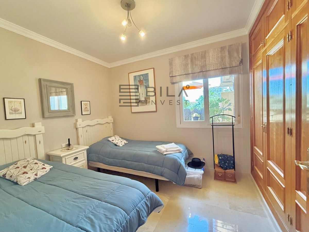The community is peaceful, well-managed, and consists of only four low-rise buildings surrounded by lush green areas, two swimming pools, a tennis/paddle court, and a service building with showers and restrooms. Façade renovations were completed in 2023, giving the complex a fresh, modern look.