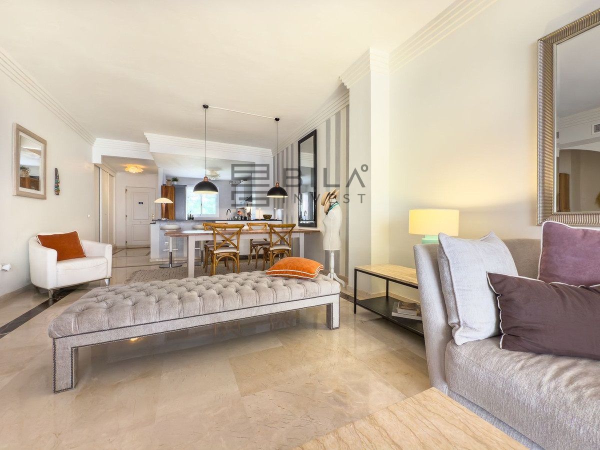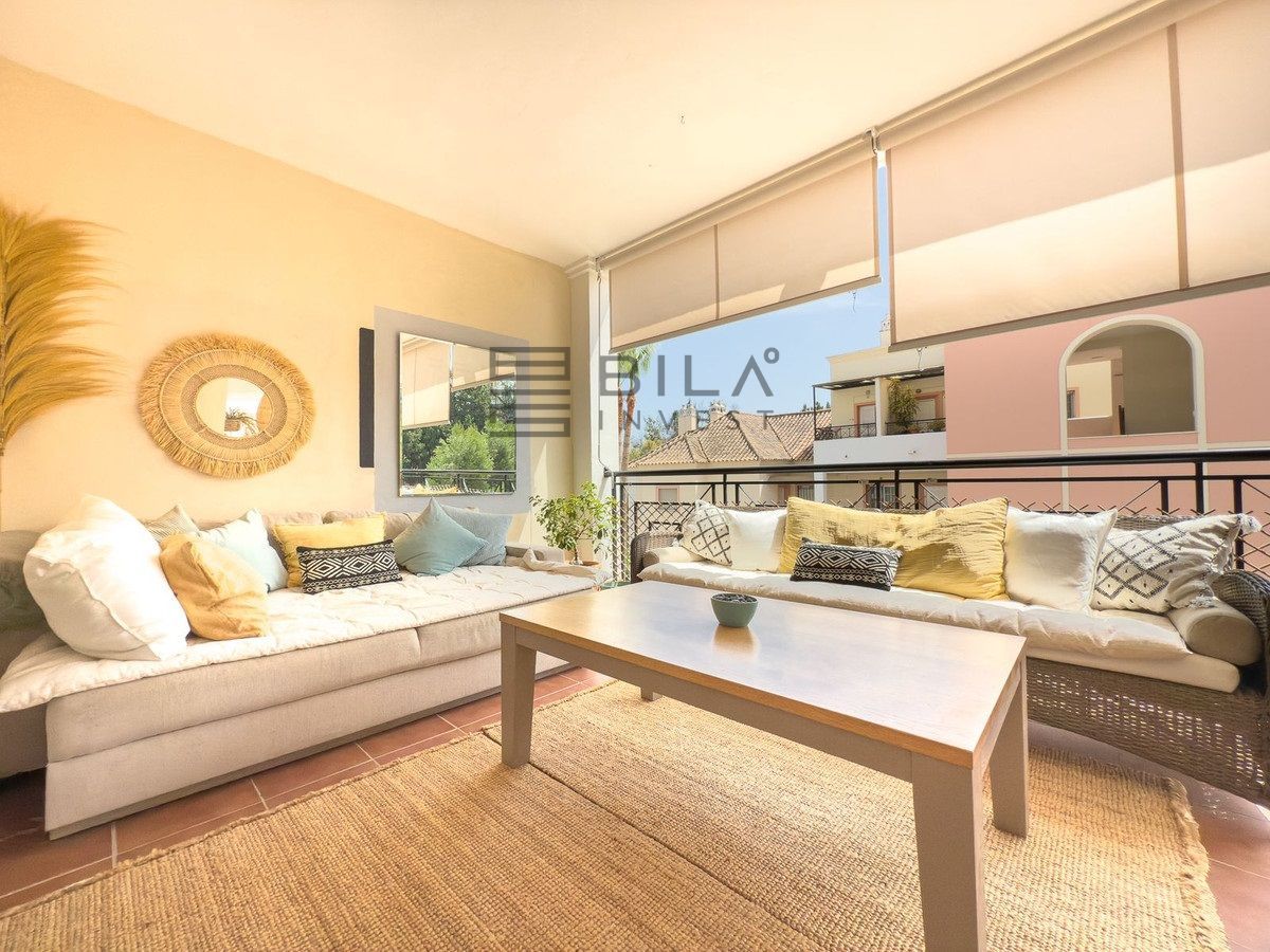 Ideally situated in the heart of Nueva Andalucía, this spacious apartment for sale offers the perfect blend of comfort, convenience, and lifestyle. Featuring 2 bedrooms and 2 bathrooms, along with a generously sized open kitchen, the layout is both practical and inviting. The living room includes a fireplace, large windows, and direct access to a covered terrace overlooking the communal area. The apartment includes underground parking and storage. Additional parking space could be purchased for 20,000EUR.