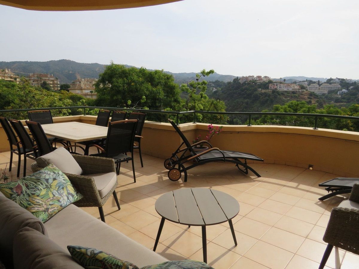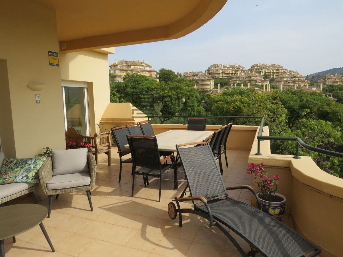 Luxury apartment located in one of the most desirable locations within Elvira in Marbella. This elevated ground floor apartment comprises 3 large bedrooms and 3 bathrooms with the master bedroom and bedroom two being en-suite, the master having direct access to the large (55m2) South facing terrace which receives lots of sun and boasts great open views and views over the lake which is located on Green Life Golf Course. Bedroom two also has a good size terrace on the back of the property and this receives sun at the end of the day. The living room is a good size and is bright and open and has access to the large sunny terrace and off the living/dinning room you'll find the fully fitted kitchen and utility room. Bedroom three is also a good size and there is a third bathroom which bedroom three she guests would use. The property comes fully furnished and has a large underground garage space and store room.