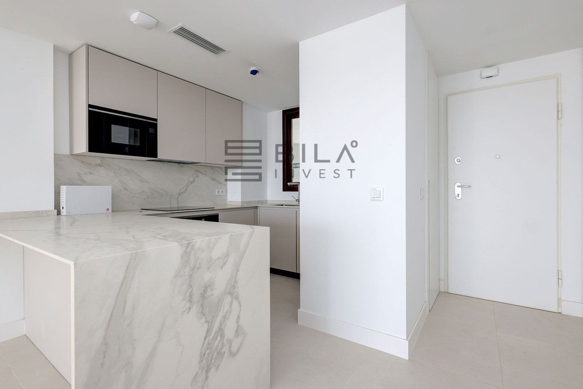Exceptional second-floor apartment in Higueron is offered at €590,000. This stylish residence features two double bedrooms and two full bathrooms, designed for comfort and modern living. The open-plan living and dining area flows seamlessly from the kitchen, creating a bright and welcoming space. Situated on the second floor, the apartment offers sea views that gently enhance its coastal atmosphere. Two underground parking spaces and a dedicated storage room are included for added convenience.