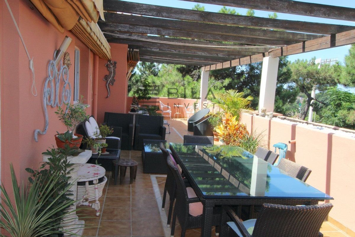 **Penthouse for Sale in Urb. Pinogolf, Elviria, Marbella - Offered by Bila Invest**We present an exclusive penthouse in the prestigious Pinogolf development, located in Elviria, one of the most sought-after areas of Marbella. This property, with a constructed area of 135 m², stands out for its functional design and spacious rooms, perfect for those seeking comfort and quality of life on the Costa del Sol. With 2 bright bedrooms and 2 full bathrooms, this property is ideal for couples or small families. The layout allows for a natural flow of light, creating a cozy and relaxing atmosphere. Built-in wardrobes provide ample storage space, optimizing the living area. The fully furnished kitchen is equipped with all the necessary appliances, making it easy to prepare your daily meals. Adjacent to the kitchen, the living room features a fireplace that adds a warm and elegant touch to the ambiance, perfect for enjoying those cool winter evenings. From the living room, you'll have access to a private terrace offering unobstructed views, making it the ideal space for relaxing or hosting outdoor social gatherings. The penthouse is air-conditioned, ensuring a cool environment during warm summer days. The property also has direct elevator access, improving everyday comfort and accessibility. It also includes a storage room where you can safely store your belongings. The Pinogolf development's setting is unbeatable. It offers large green areas and an attractive communal pool, perfect for cooling off and enjoying the Marbella sun. Access surveillance guarantees the security and tranquility you're looking for in your home. Located in Elviria, this property is close to restaurants, shops, and beaches, providing the convenience of having everything at your fingertips. The proximity to golf courses and recreational areas, as well as its easy access to the main road, make this location a strategic point to enjoy all that Marbella has to offer. This penthouse presents a unique opportunity in the Costa del Sol real estate market. Don't miss the chance to experience a space that combines comfort, location, and quality. We invite you to contact us to schedule a visit and discover all the potential this property has for you. **Bila Invest** is at your disposal to make your dream of living in Marbella a reality. Don't wait any longer and take the first step towards your new home!