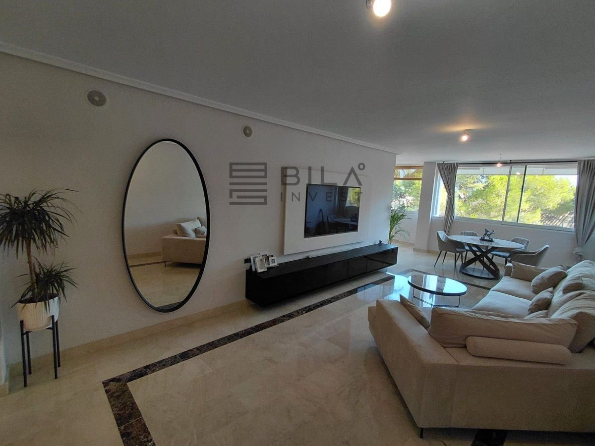 Spacious and cozy living-dining room with abundant natural light thanks to its south-facing orientation and panoramic sea views.