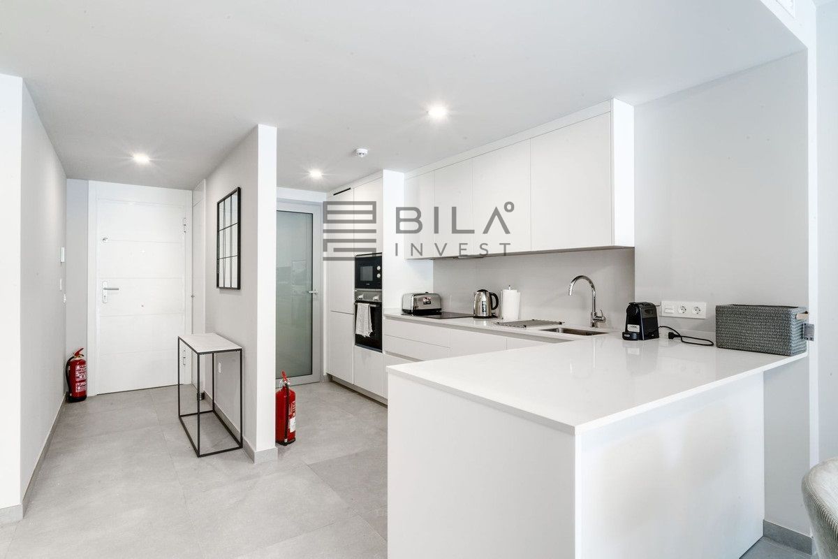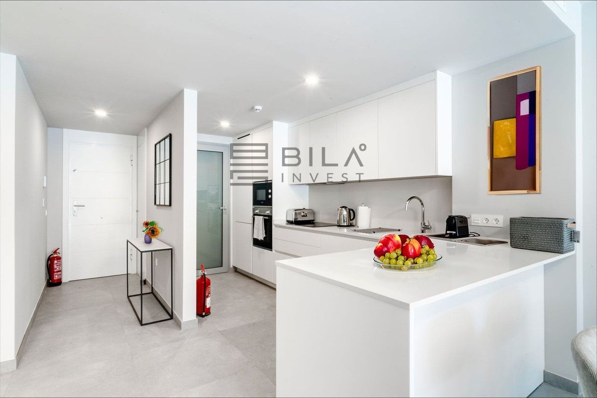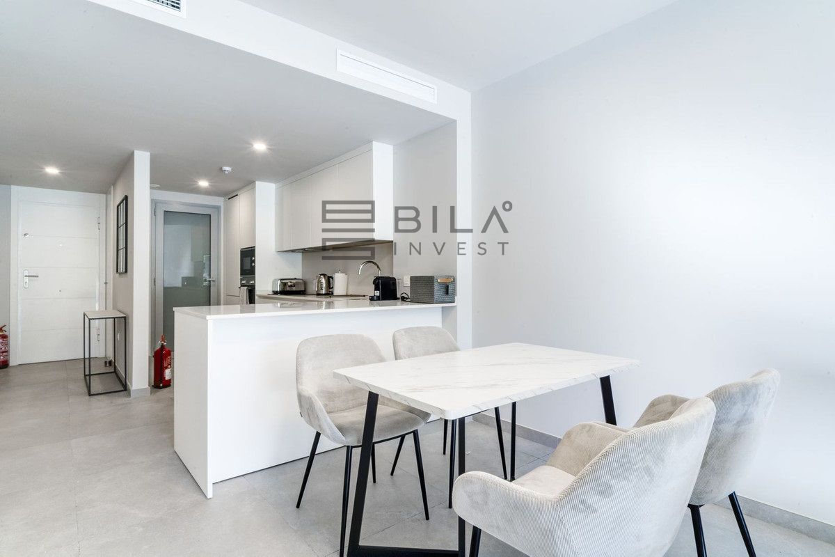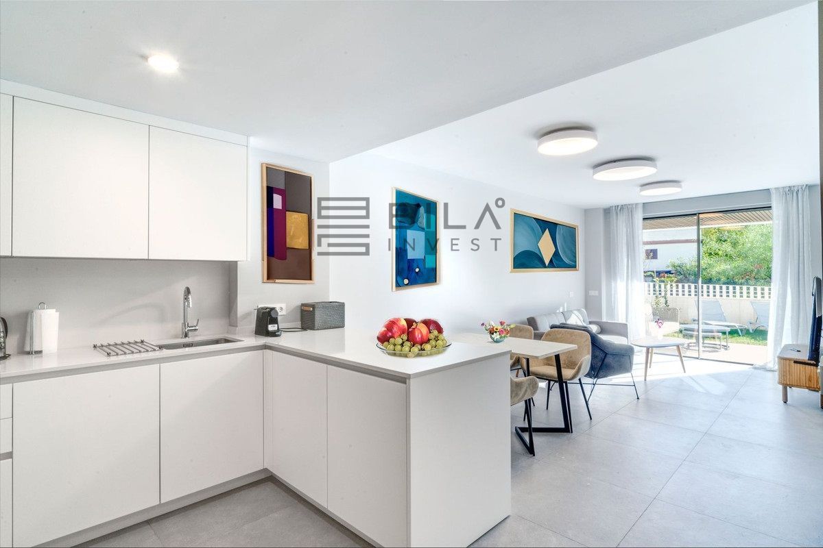 Spectacular two bedroom ground floor apartment in the brand new gated community Estrella Del Mar, Marbella. This beachside community is only 200m from the beach and in a privileged location close to services, leisure facilities, shops and restaurants. The community offers communal swimming pools, a gym and co working area. The property has an open plan living and dining area with access to a private terrace and garden; fully fitted open plan kitchen with laundry area; master suite with access to the terrace; guest bedroom; and a guest bathroom. Other features include a private parking space, storeroom, hot and cold air conditioning, electric blinds and full domotic system.