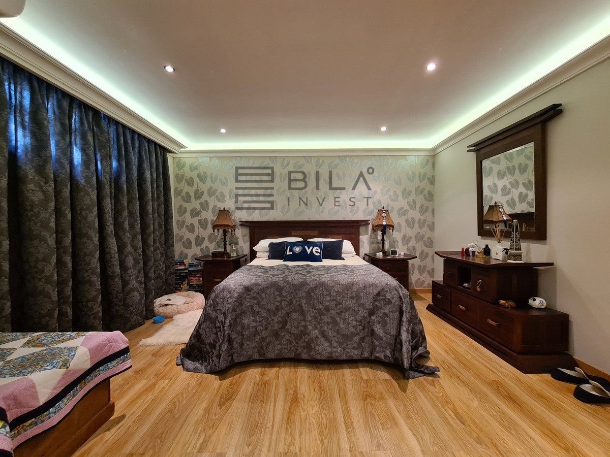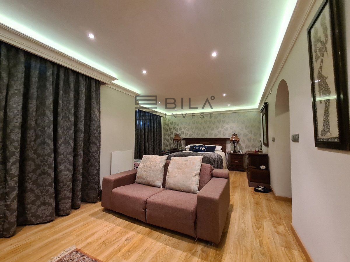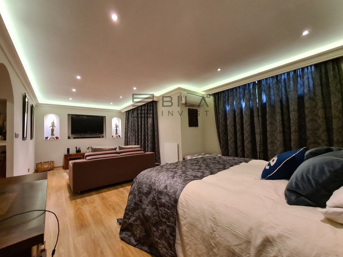The primary suite is a true retreat, offering a five-star ambiance with its expansive bedroom, private lounge, opulent en-suite bathroom, and walk-in wardrobe. A fourth bedroom upstairs, currently styled as a home office, adds further flexibility.