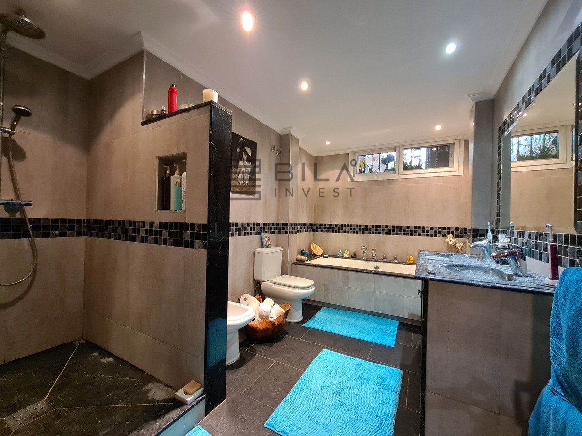 The lower level features two generous guest bedrooms, a large family bathroom, and a versatile office, all opening out to stone terraces and the peaceful yoga zone.