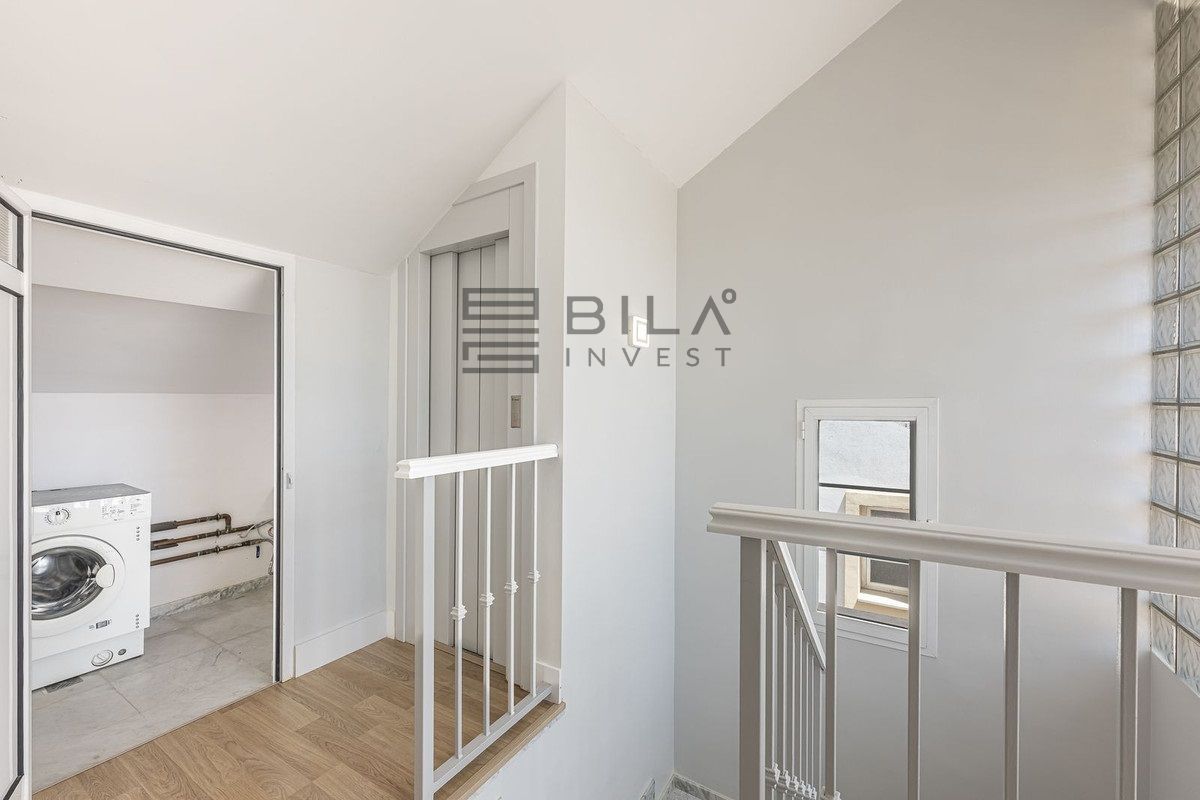 Spread over three floors plus a basement, all connected by a lift and stairs, the property has four bedrooms, three full bathrooms and a toilet.