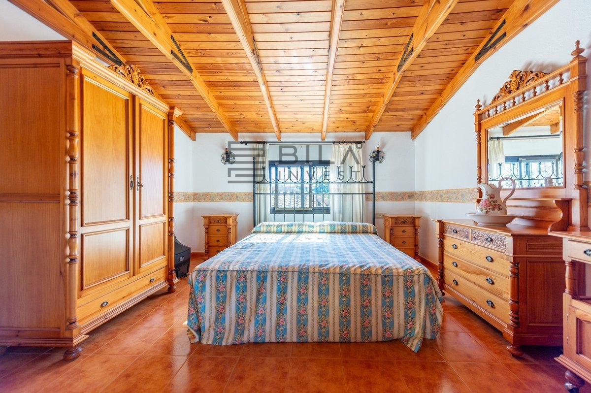 The villa has a built area of 237m2 on a plot of 1,016m2, with an interior surface of 167m2. It is distributed on two floors. On the ground floor there is a large living room with fireplace, a fully equipped kitchen, three bright bedrooms with fitted wardrobes and two bathrooms, one of them with jacuzzi to enjoy moments of relaxation. The upper floor houses an attic with wooden panels, which includes a fourth bedroom and a full bathroom, offering the possibility of transforming it into an independent space.