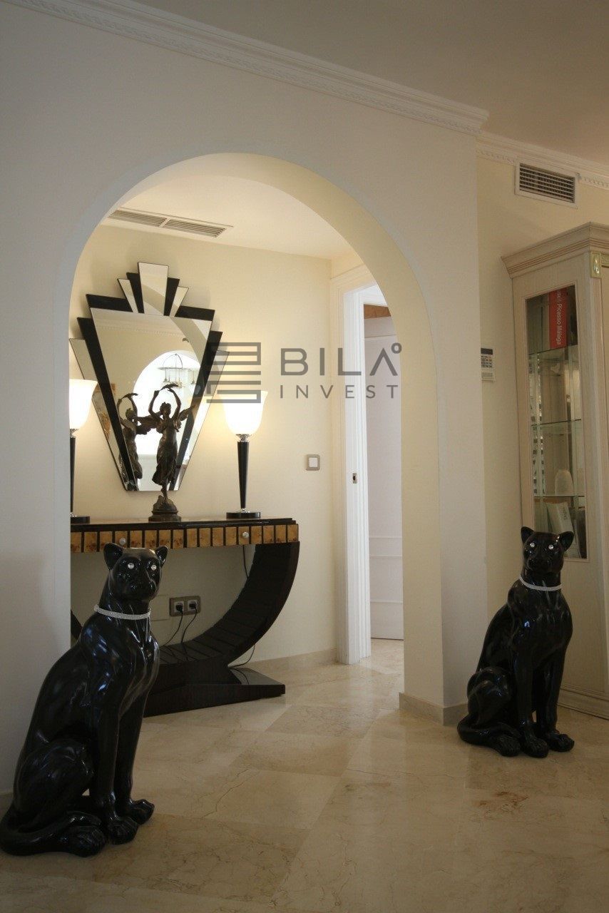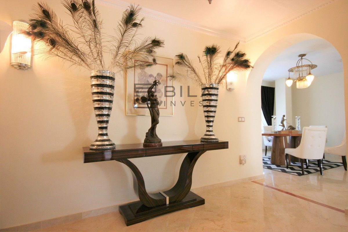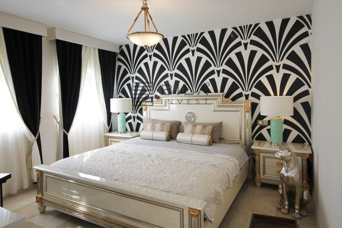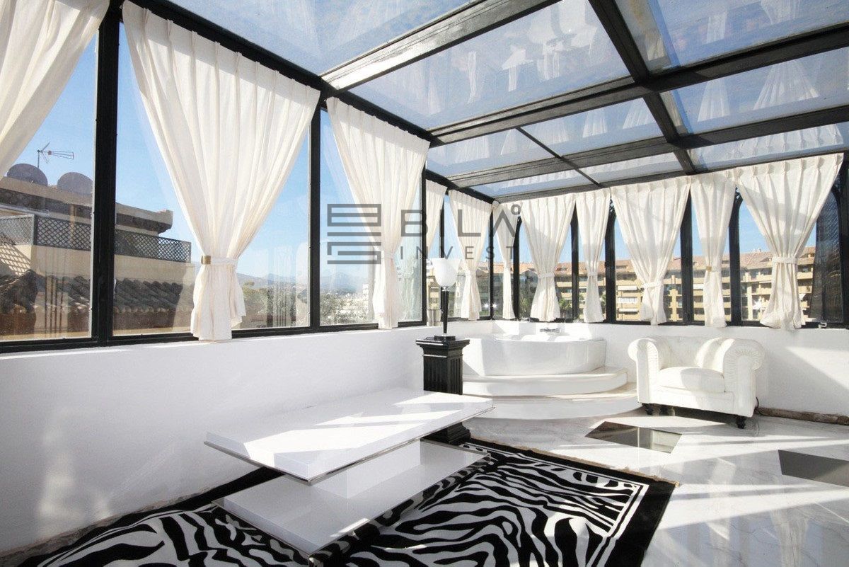 Situated frontline golf in the highly desirable area of Guadalmina Alta lies what is possible the only Art Deco apartment in the whole of Andalucia. This utterly stunning duplex penthouse is located in small quiet complex of apartments away from any road noise and yet just a short distance away from the town of San Pedro and the many restaurants and amenities of Guadalmina. Upon entering the property you immediately get a sense of space and opulence, due to both the distribution and the incredible decor and furnishings throughout the penthouse. On the main level you have an enormous living room with a separate dining area off to the left and a further sitting area off the living room to the right which over looks the Guadalmina golf course. The exquisite furnishings and decor are unique Art Deco pieces from around the world, many of which have great provenance and have come from America via auction houses in Paris, London and Rome. The thought and attention to detail that has gone into this Art Deco property is absolutely outstanding and must been seen first hand to be able to truly appreciate in its entirety. As you would expect, the fully fitted kitchen is in keeping with the rest of the house in terms of both quality and design, and that continues of course through into both the large master suite and the second bedroom with it own adjoining bathroom. A staircase leads from the dining area up to an exquisitely designed conservatory/ bedroom suite with jacuzzi, which again enjoys the amazing views out over the golf course. This in turn leads out onto 65m2 solarium with a Jacuzzi, again all this conforming with the elegant Art Deco style.