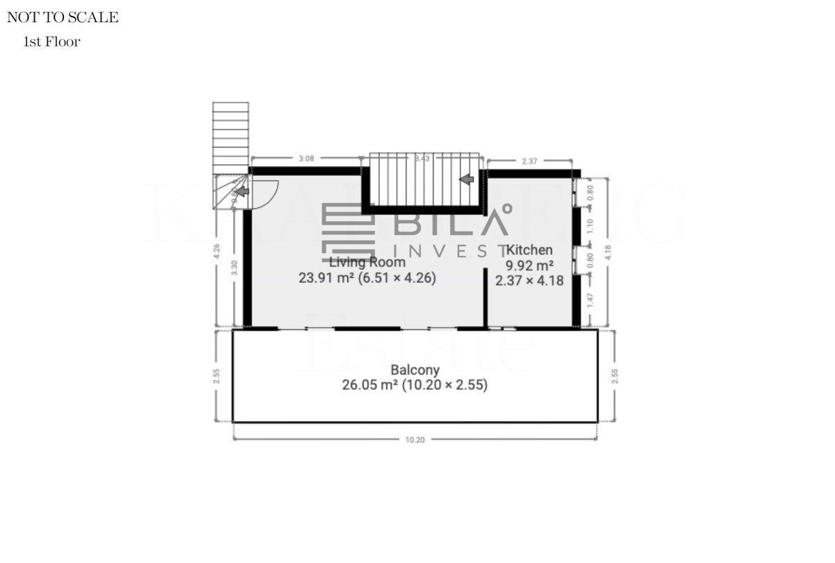On the 1st floor, you will find the kitchen and the spacious living/dining room, with a cozy fireplace providing a perfect setting, for relaxation and entertainment.