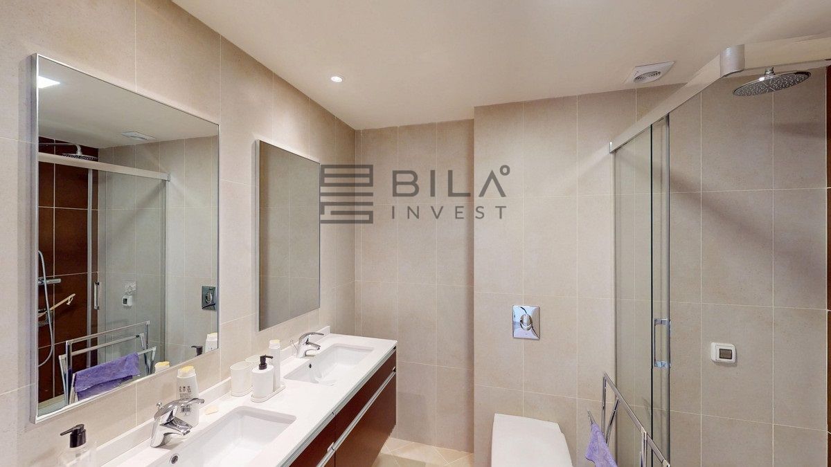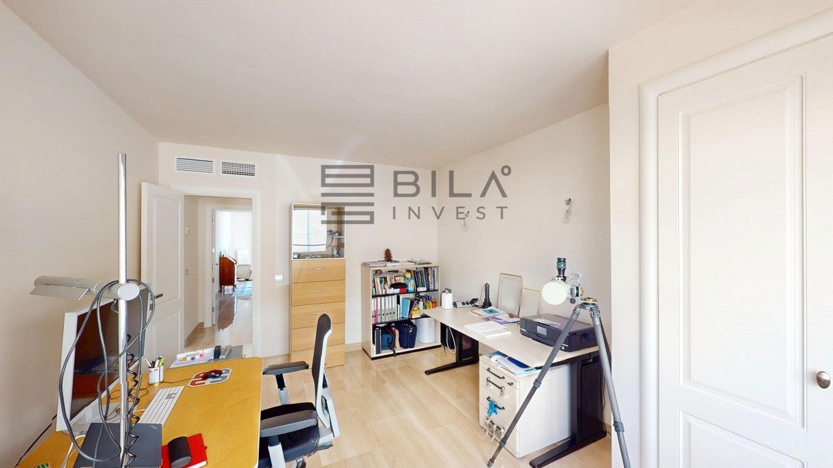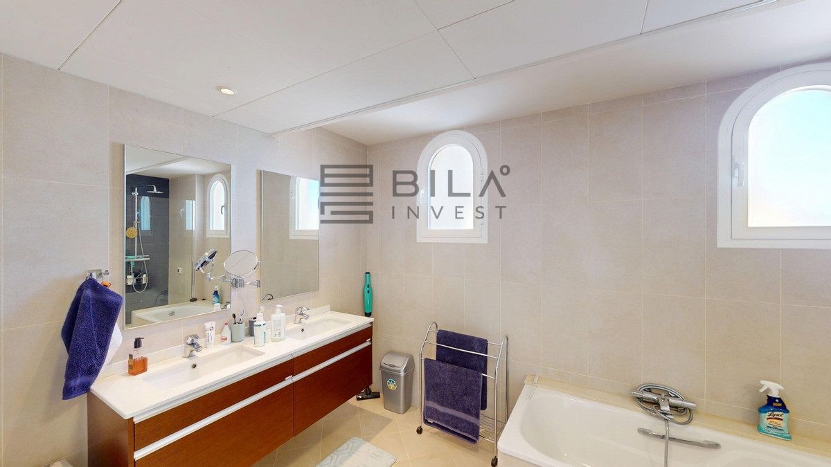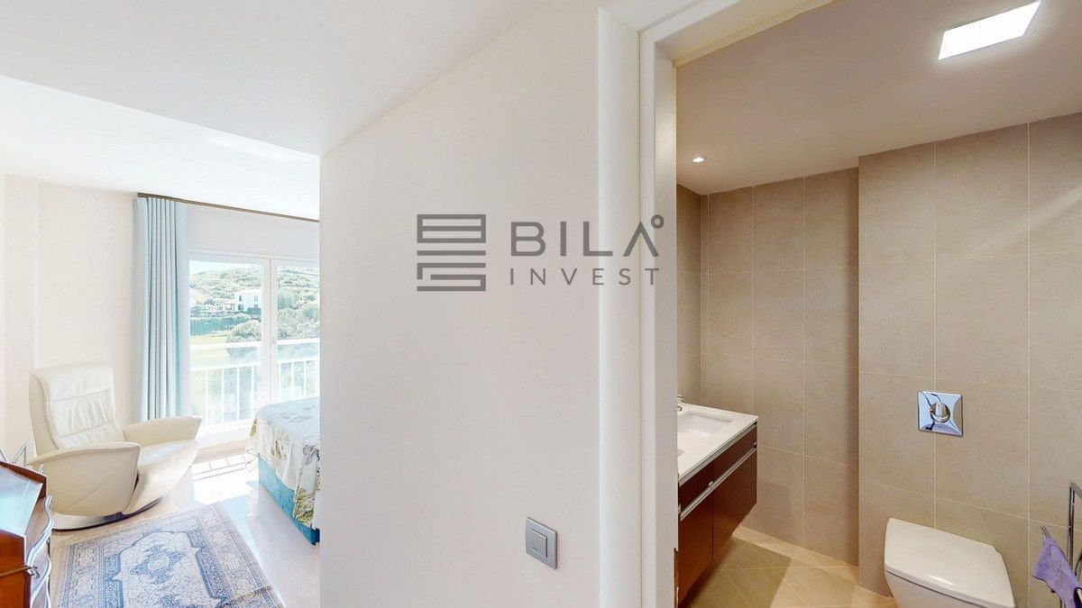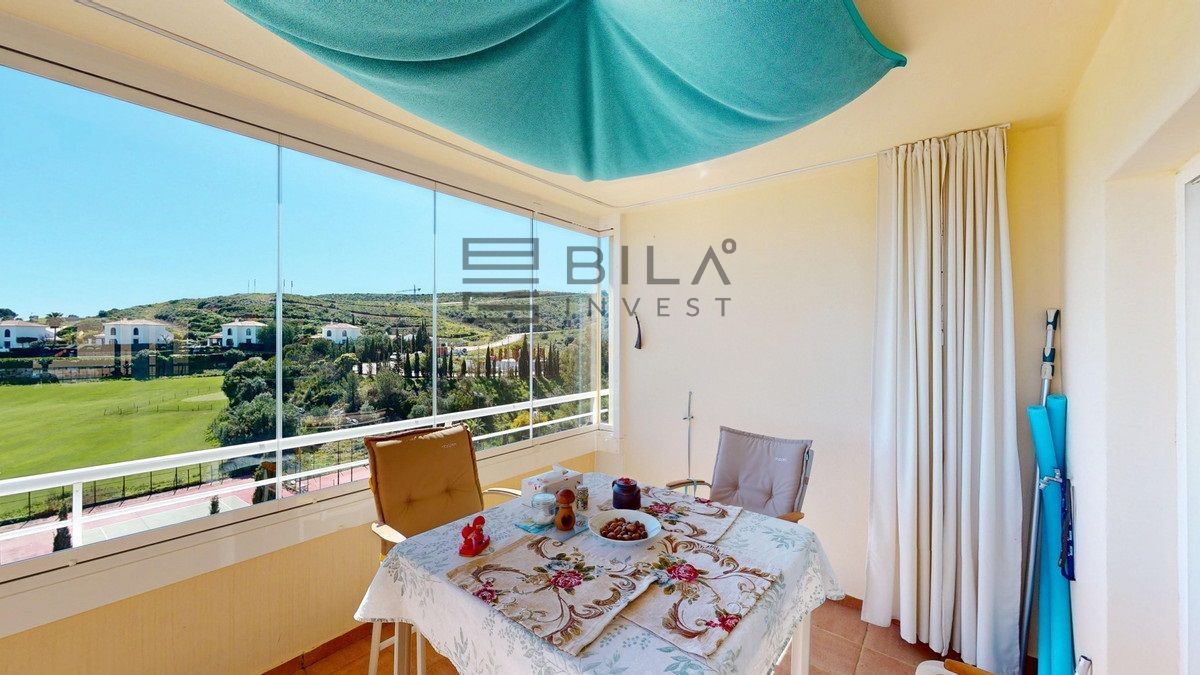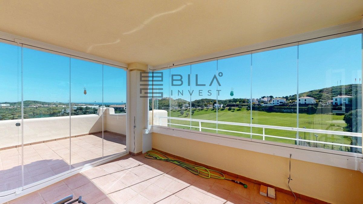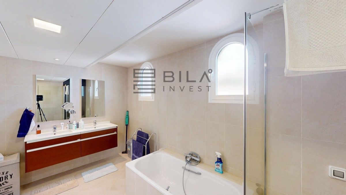 This contemporary penthouse in Mijas, Málaga, offers a harmonious blend of comfort and style. It is located directly on a golf course and offers an impressive view of the sea, so you can enjoy both the tranquillity of the green and the panorama of the coast. The open-plan living area features floor-to-ceiling windows that flood the space with natural light and provide stunning panoramic views of the surrounding landscape. The living room is tastefully furnished with a plush white sectional sofa, accented by vibrant area rugs that add warmth to the polished floors. The sleek kitchen boasts modern navy cabinetry contrasted with white countertops and high-end stainless steel appliances, creating a sophisticated culinary space. The penthouse's three bathrooms are elegantly appointed, with one showcasing a floating double vanity in rich wood tones and a glass-enclosed shower. The primary bedroom is a serene retreat with direct access to a private terrace. It features a canopied bed, a spacious walk-in closet, and a luxurious en-suite bathroom with both a bathtub and a shower. The second bedroom offers equally impressive views and is furnished with a comfortable double bed. A dedicated office space provides a functional work area with a modern desk setup and ample natural light. The crowning feature of this property is the private terrace, complete with a swimming pool and expansive views of the surrounding hills and greenery. Additionally, the penthouse includes two parking spaces and two storage rooms. Residents also have access to excellent communal amenities, including a large swimming pool, a heated pool, and an outdoor kitchen that can be used by everyone. With its thoughtful layout, luxurious amenities, and prime location in Urbanización Cerrado del Águila, this penthouse offers a perfect balance of indoor comfort and outdoor living in the heart of Costa del Sol. We are pleased to be able to present this dream property to you soon, either personally or via virtual viewing. Because this world is unique - just like our Axarquía. In Andalusia. On the Costa del Sol. Here, on the sunny side of life...