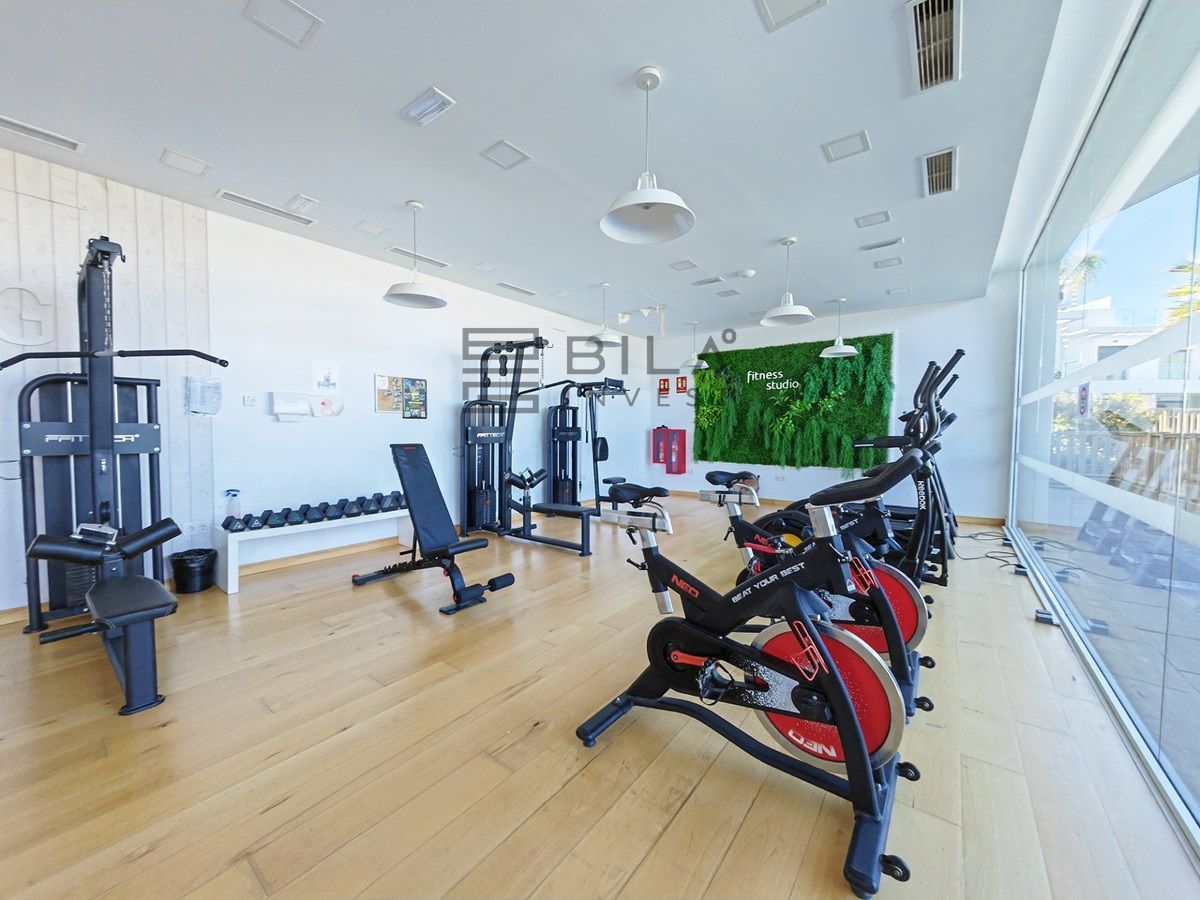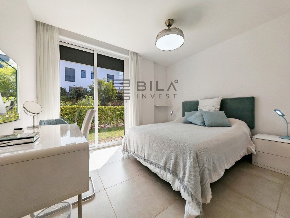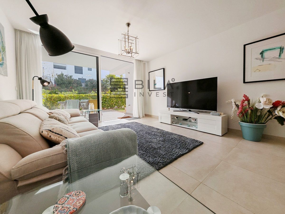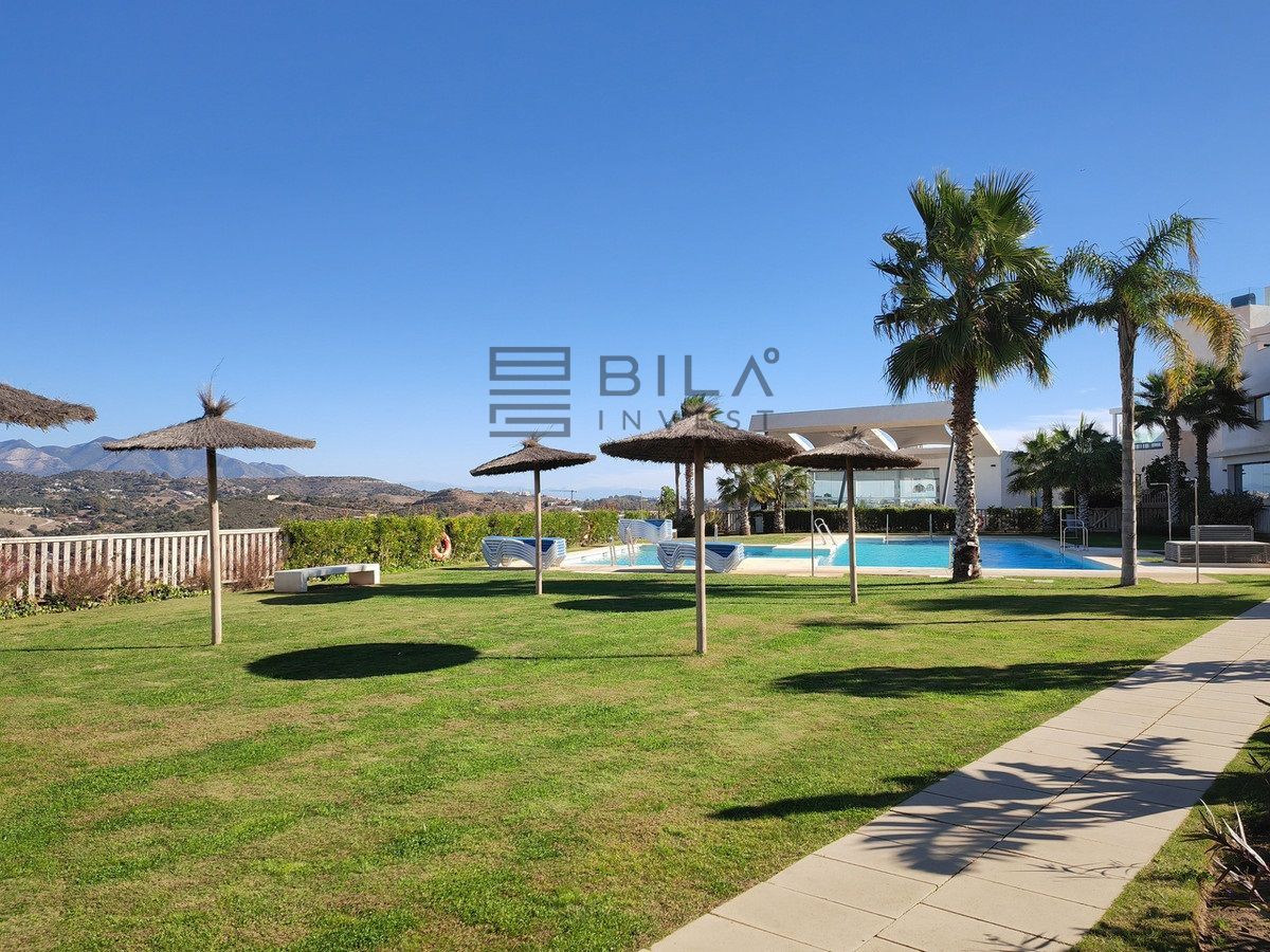 Ground Floor Apartment for sale in , Mijas Costa with 3 bedrooms, 2 bathrooms, 1 on suite bathroom and with orientation east, with communal swimming pool, private garage (1 parking spaces) and private garden. Regarding property dimensions, it has 108 m² built and 26 m² terrace. Has the following facilities amenities near, transport near, air conditioning, fully fitted kitchen, jacuzzi, sauna, satellite tv, solar panels, storage room, gym, security entrance, double glazing, security service 24h, private terrace, kitchen equipped, mountain view, indoor pool, heated pool, security shutters, internet - wi-fi, covered terrace, 24h service, electric blinds, fitted wardrobes, gated community, lift, garden view, tennis / paddle court, doorman, close to children playground, close to sea / beach, close to golf, uncovered terrace, glass doors, optional furniture, spa, handicap accessible, excellent condition, close to shops, close to town, close to schools, surveillance cameras and pets allowed.