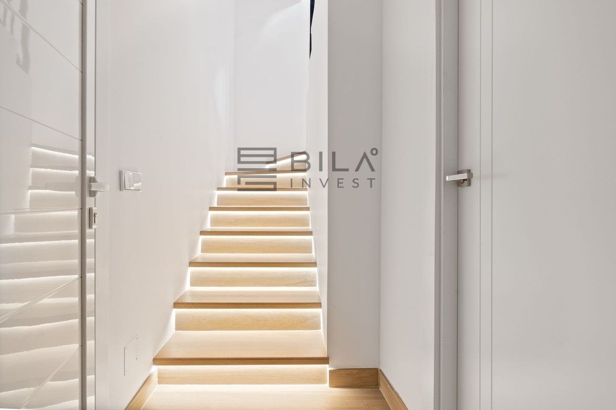 With a total built area of 174 m² of usable space, the property is thoughtfully distributed across three levels, offering bright and generous living areas throughout. The basement includes a cosy games room, a storage space, and direct access from the private underground parking – a practical and secure feature for everyday convenience.