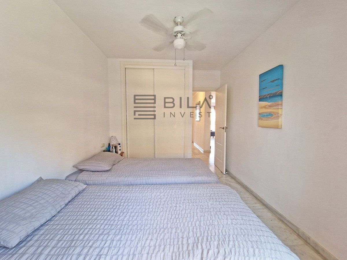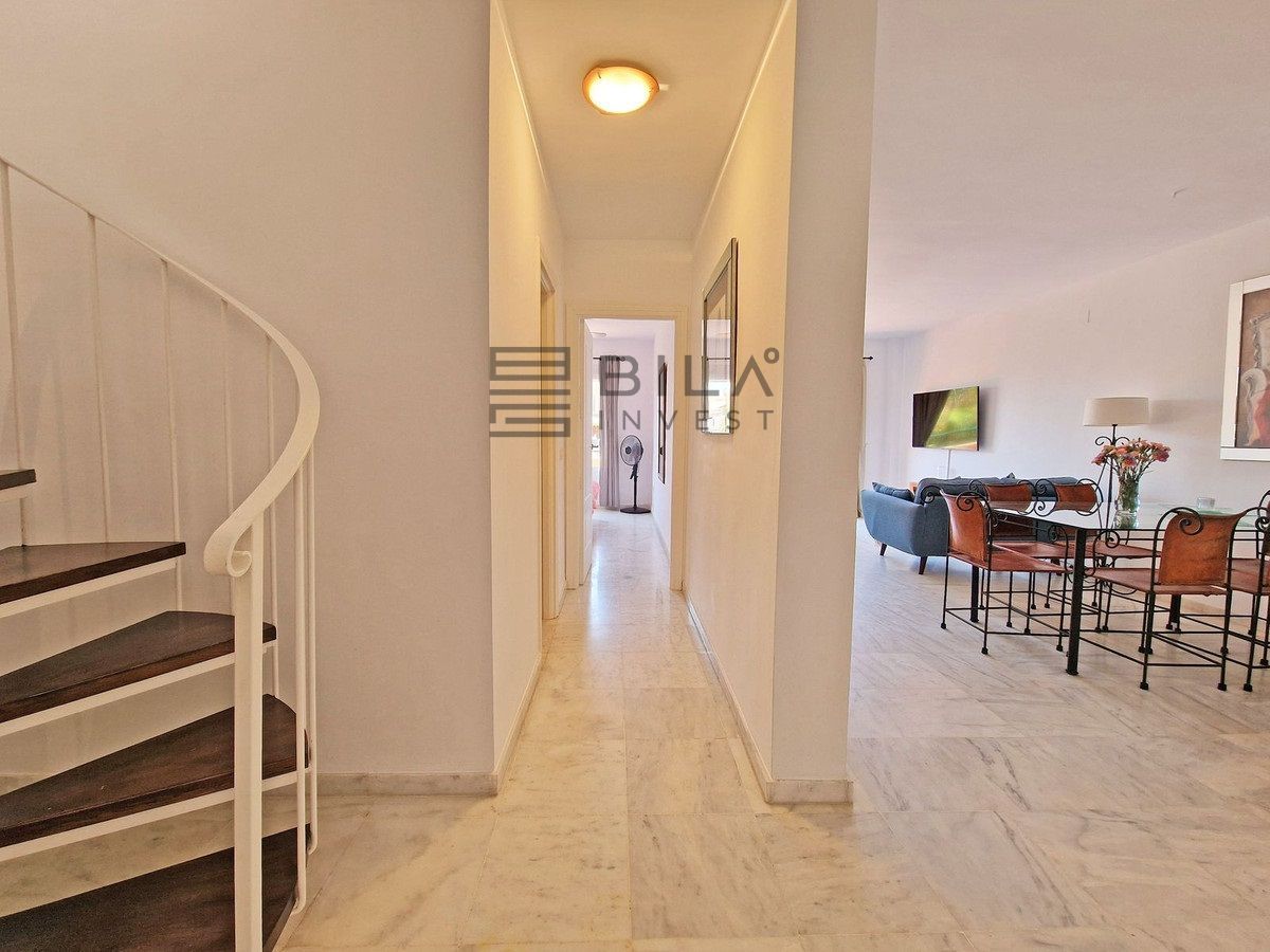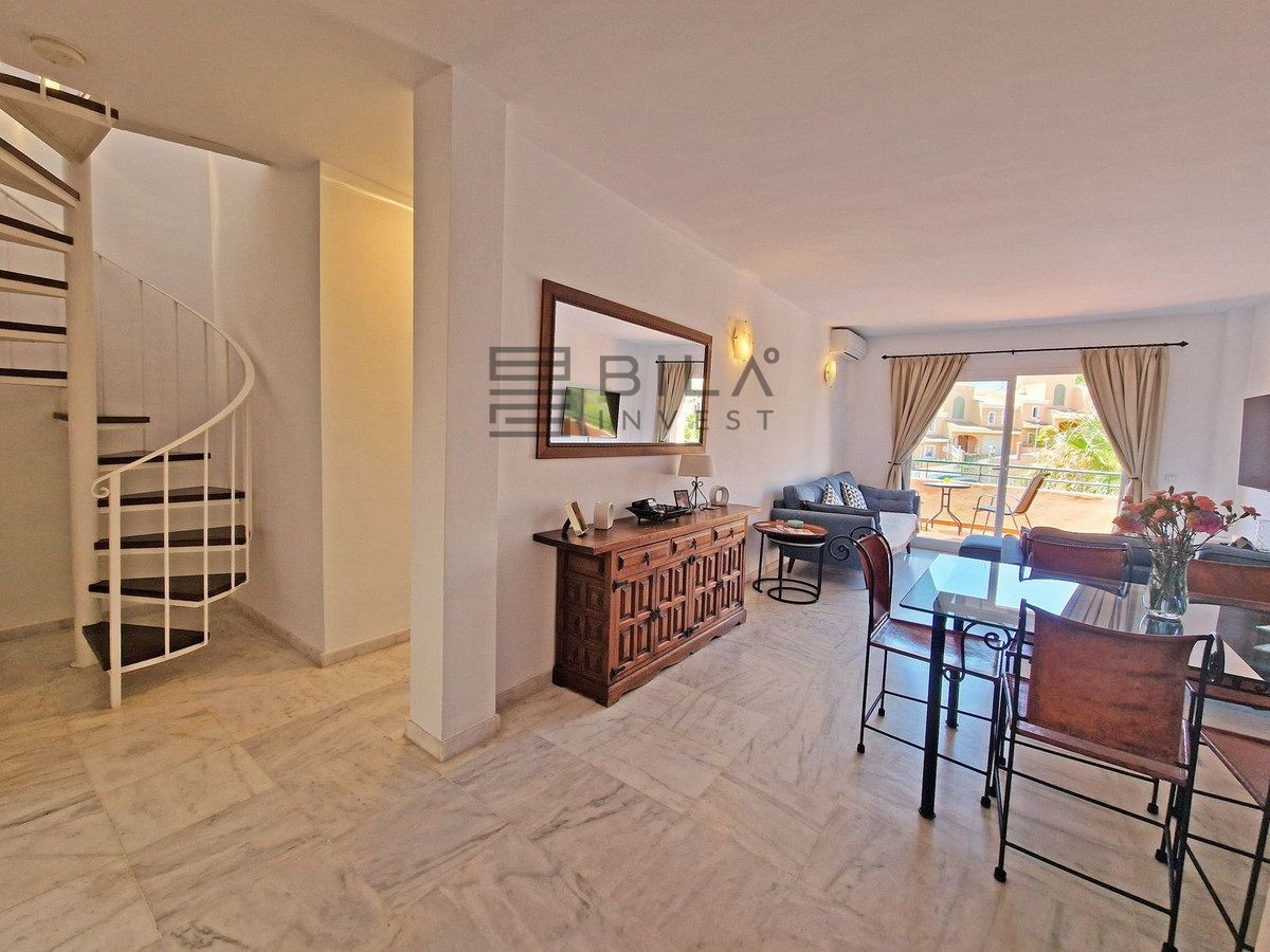 This bright and impeccably maintained apartment offers a smart and functional layout. On the upper floor, you'll find a luxurious master suite complete with a private terrace, creating a peaceful retreat with open views. On the main level, two additional double bedrooms share a well-appointed bathroom, ideal for guests or family.