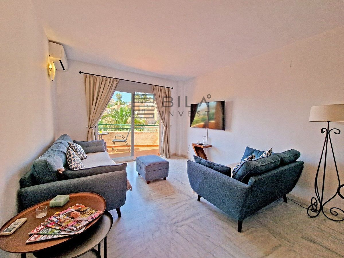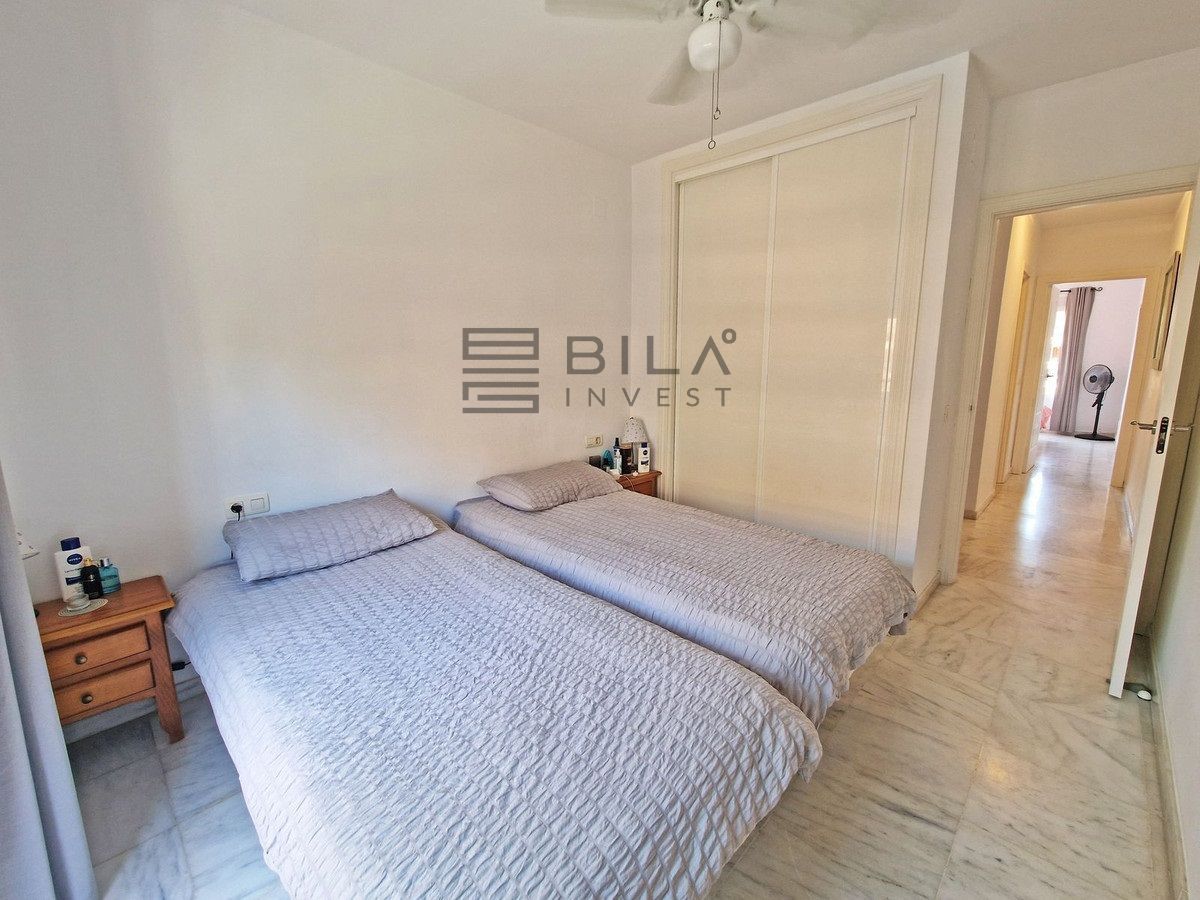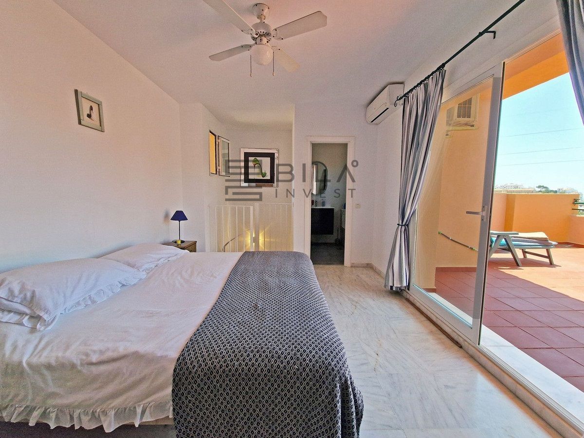 This bright and impeccably maintained apartment offers a smart and functional layout. On the upper floor, you'll find a luxurious master suite complete with a private terrace, creating a peaceful retreat with open views. On the main level, two additional double bedrooms share a well-appointed bathroom, ideal for guests or family.