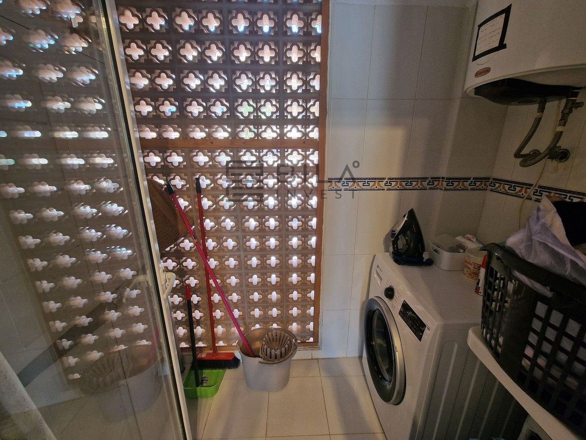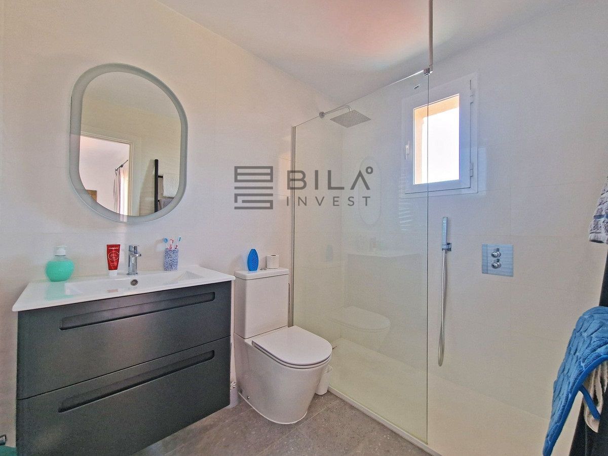 The fully equipped kitchen includes a separate laundry area, which can be easily integrated to create a larger open-plan space if desired. Comfort is ensured year-round with air conditioning installed in the living-dining area and in the master bedroom.