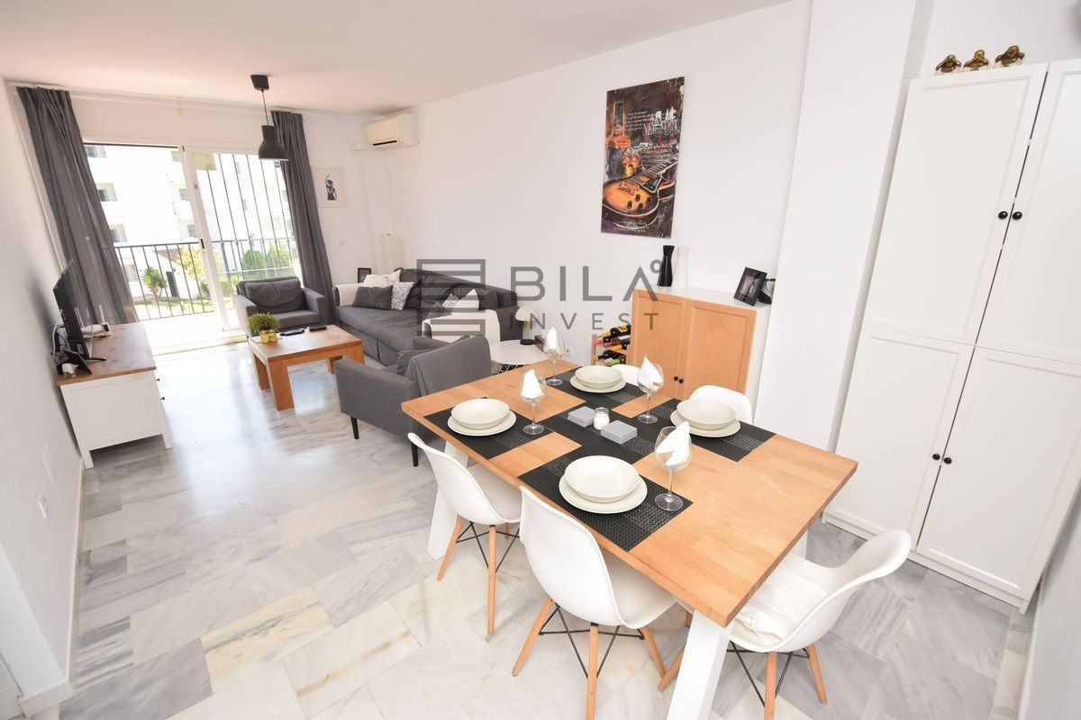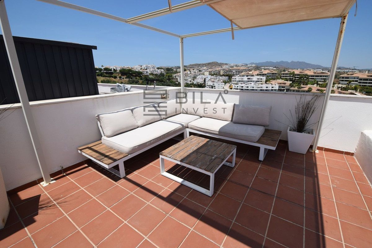 **Penthouse for Sale in Urb. Ángel de Miraflores, Mijas Costa - Offered by Bila Invest**Located in the prestigious Ángel de Miraflores development in Mijas Costa, this magnificent penthouse combines comfort, style, and an enviable setting. With a constructed area of 70 m², this property is ideal for those seeking a functional and cozy home on the Malaga coast. Upon entering, you discover a spacious and bright living room that invites you to relax and enjoy time with family and friends. This space is complemented by a fitted kitchen, designed to facilitate daily tasks and provide a pleasant and practical environment. Equipped with built-in wardrobes, the penthouse offers optimal storage solutions to maximize the use of space. The property has three bedrooms, perfect for accommodating the whole family or for use as an office or playroom. Each room offers a quiet and bright environment, guaranteeing the privacy and comfort expected of a home. It also has two well-equipped bathrooms, adding functionality and comfort to everyday life. One of the highlights of this property is its access to a communal pool, ideal for enjoying the Mediterranean climate and relaxing moments in a safe and relaxing environment. The carefully maintained green areas of the complex allow for pleasant walks and a break from the daily grind. This penthouse is equipped with air conditioning, ensuring well-being at any time of year. Security is also a priority, as the complex has security access, providing peace of mind to its residents. The location is undoubtedly one of the most attractive aspects of this property. Mijas Costa is known for its exceptional climate, beautiful beaches, and wide range of services. The proximity to restaurants, shops, and recreational activities allows for a comfortable and active lifestyle. Furthermore, easy access to other towns facilitates access to urban and rural life on the Costa del Sol. This penthouse represents an excellent investment opportunity in one of the most sought-after areas on the coast. Its combination of features and advantages, such as spaciousness, recreational areas, and security, make it an unbeatable option for those looking for a new home or a property for vacation rental. Don't miss the opportunity to see this exceptional property in Mijas. We invite you to visit this property, where quality of life and comfort come together in a space designed to fully enjoy every moment. For more information and to arrange a viewing, contact Bila Invest and secure your new home on the Malaga coast.