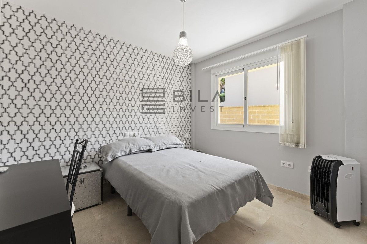 Apartment with 100m2 of garden for sale in Edif. Sabinas, Carib Playa, Marbella, with 112m2, 2 bedrooms and 2 bathrooms, swimming pool, garage, storage room, elevator and air conditioning.