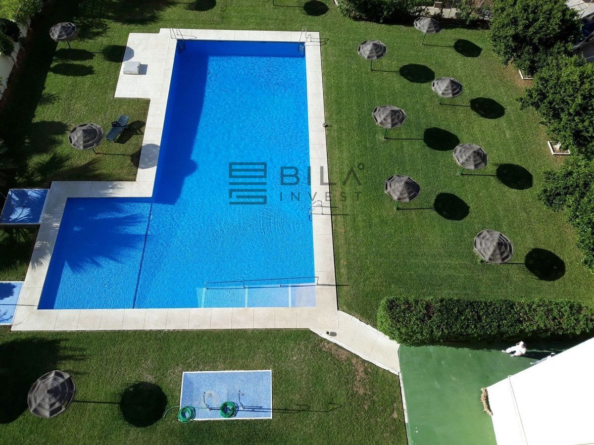 The building itself is meticulously maintained, with concierge and maintenance staff, and features a large Olympic-sized swimming pool surrounded by lush lawns – perfect for soaking up the Costa del Sol sunshine.
