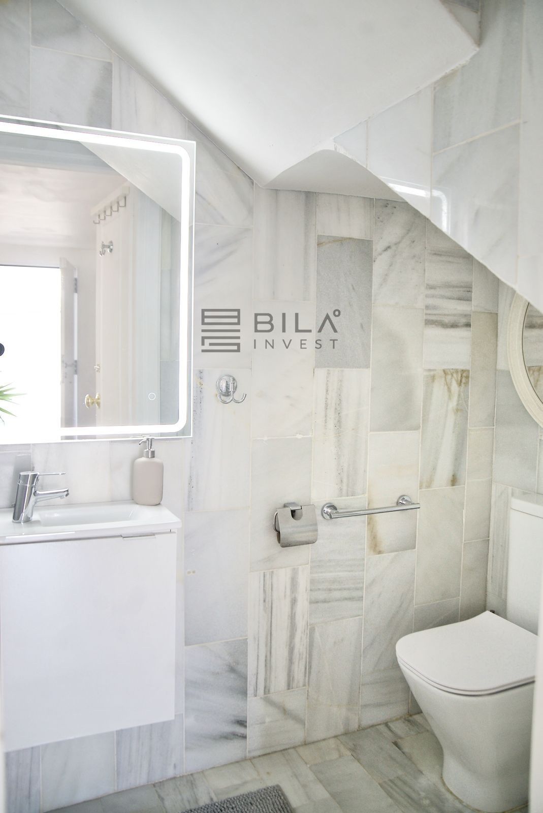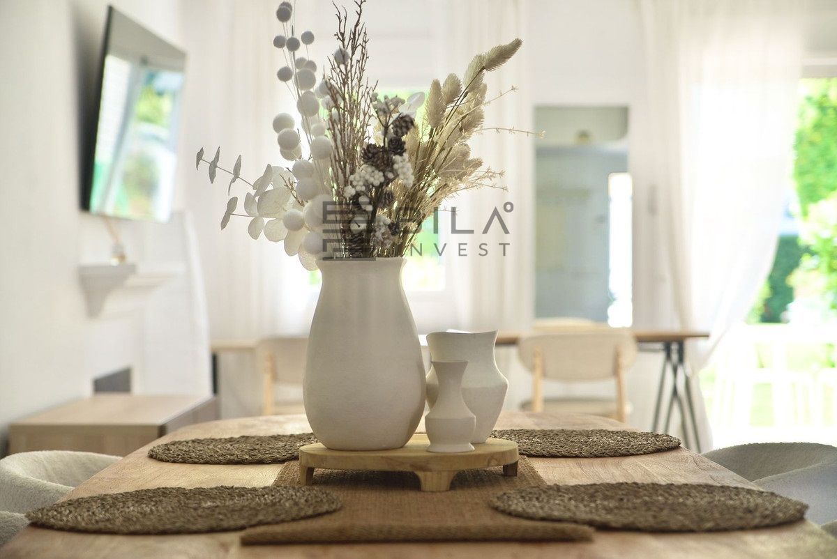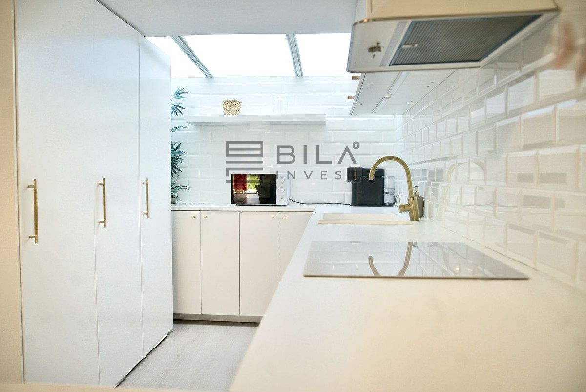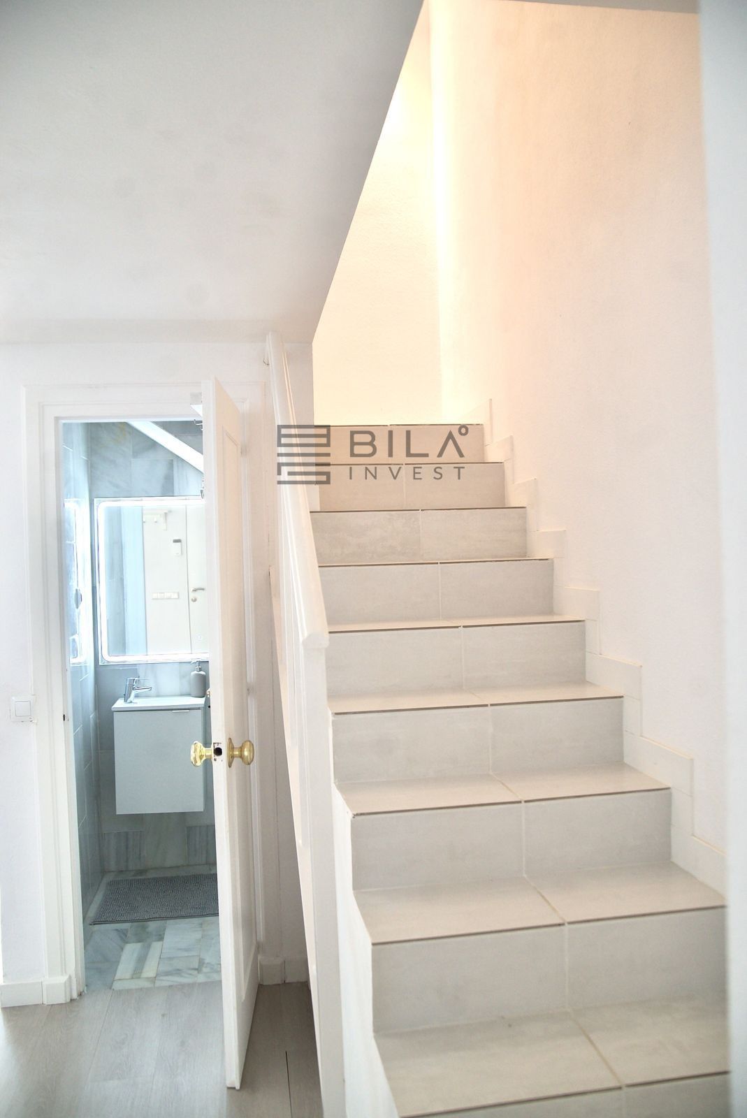 Upstairs, the home features three bedrooms, including a primary suite with access to two private terraces, and two bathrooms, all flooded with natural light.