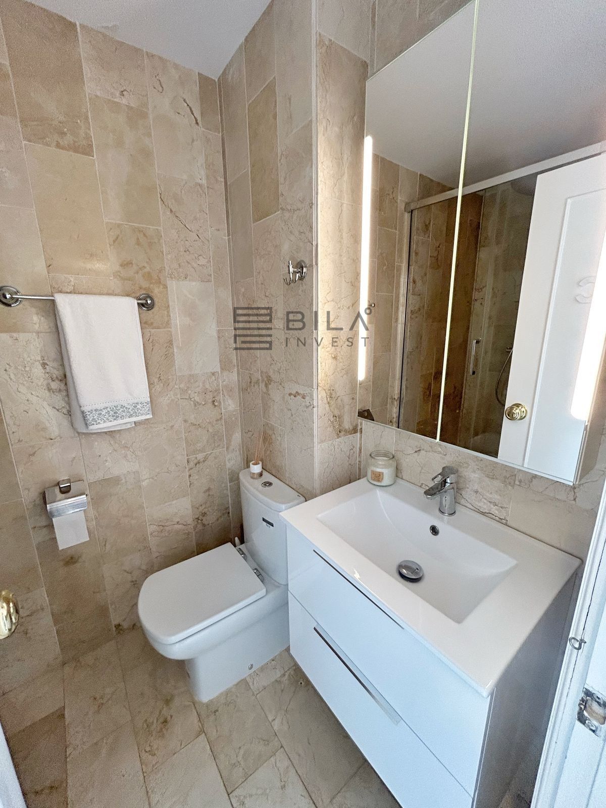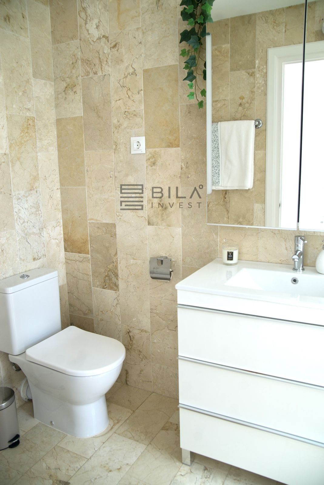 Distributed across two floors, the property boasts three spacious bedrooms, three bathrooms, and a functional layout designed for both comfort and privacy. On the ground floor, you'll find a welcoming vestibule with built-in wardrobe, a fully equipped kitchen, a generous living and dining area, a guest toilet, and direct access to a private terrace, porch, and utility patio.