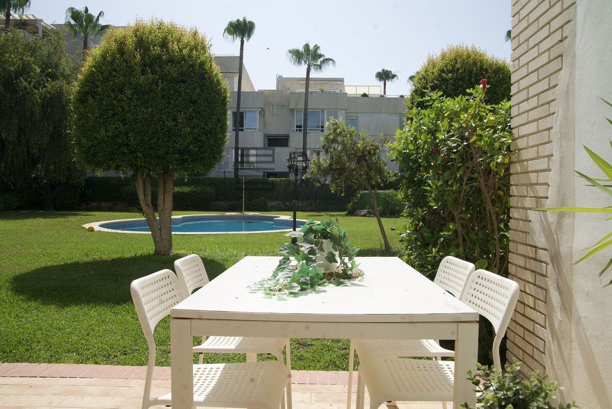 The total built area is approximately 138 m², with 29 m² of exterior space divided between terraces and a private porch. The property is surrounded by lush communal gardens and is just steps from the prestigious Guadalmina Golf Course, making it an ideal residence or investment for golf lovers.