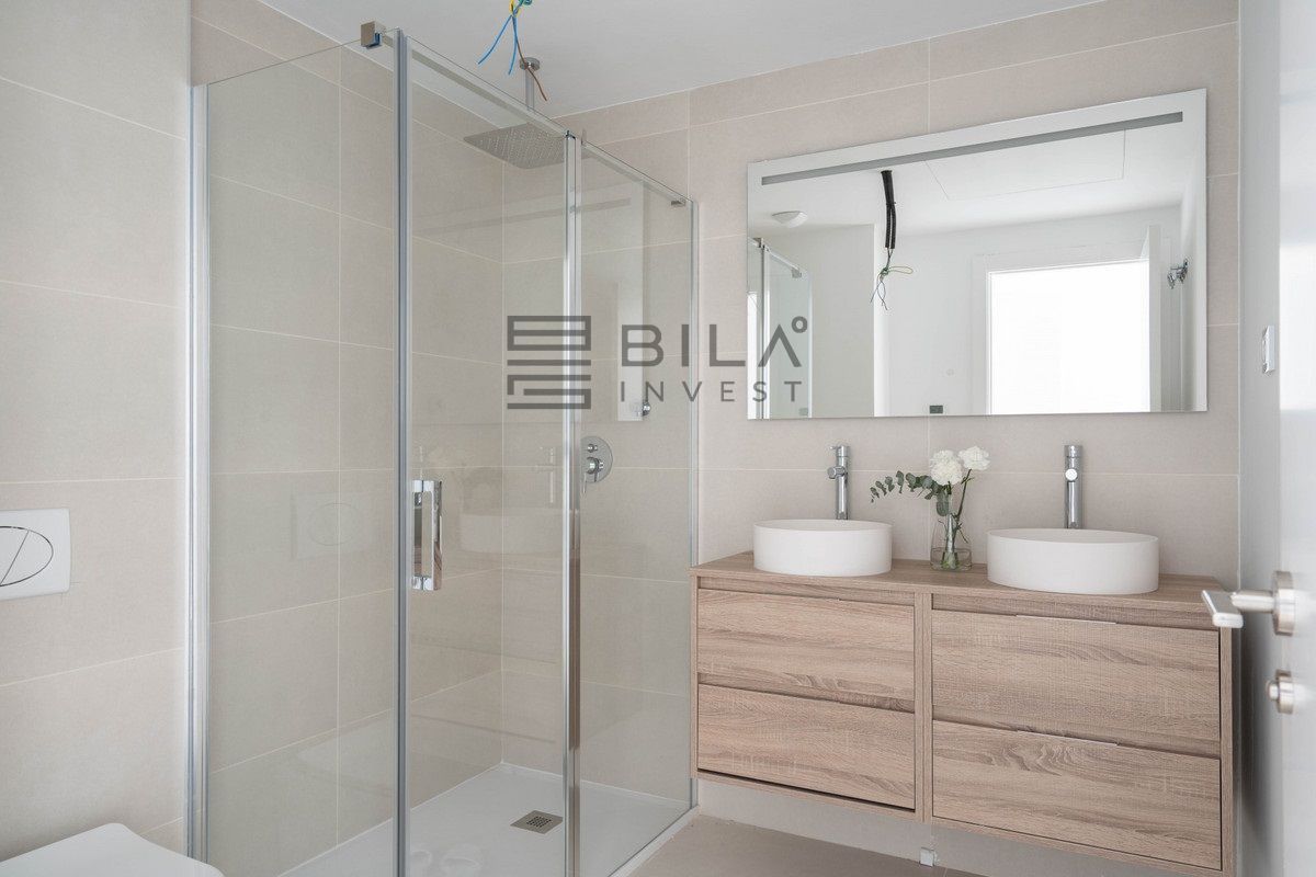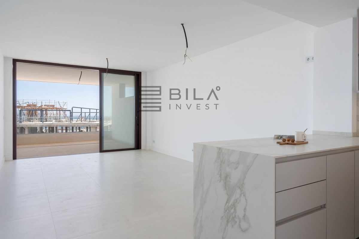 This elegant second-floor apartment offers two double bedrooms, two full bathrooms, and a bright open-plan living space with sea views. It includes two underground parking spaces and a storage room for added convenience.