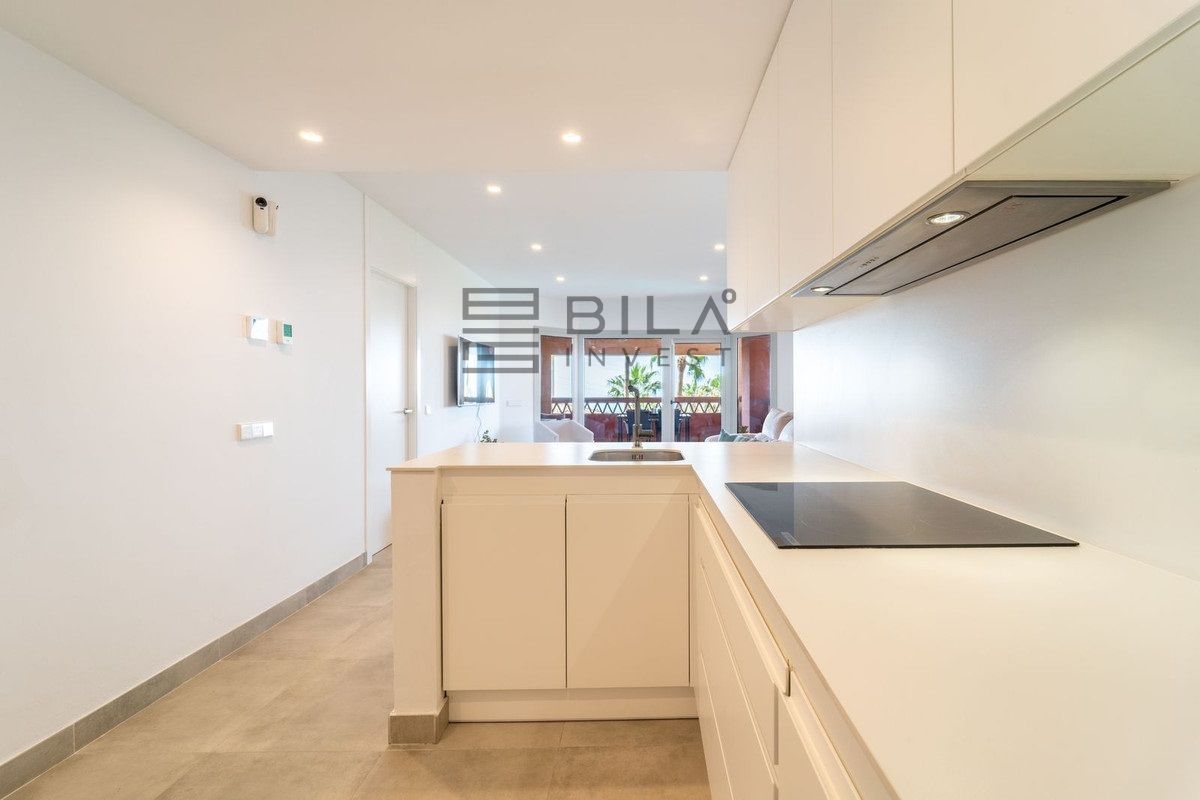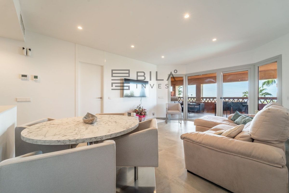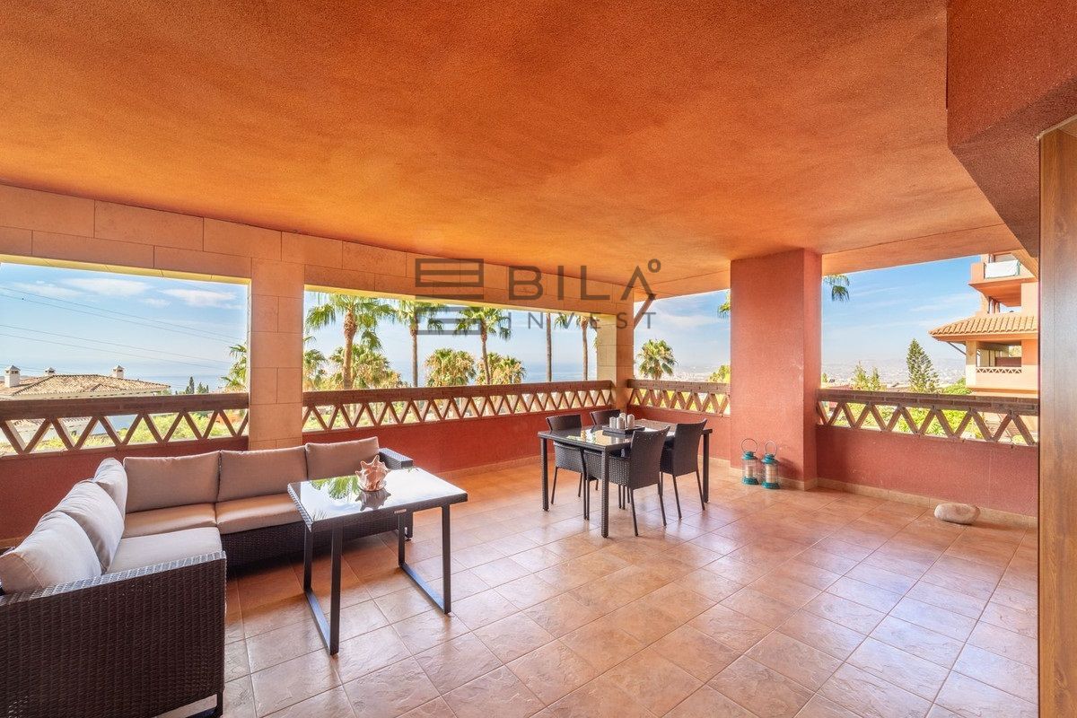 Recenlty refurbished south facing apartment located in the exclusive urbanization Reserva del Higuerón, with 2 bedrooms, 2 bathrooms, living-dining room, open plan kitchen fully furnished and equipped with electricial appliances, terrace of 37m2 with views of the Mediterranean sea, community pool and gardens. Air conditioning hot and cold, video intercom, electric blinds and built-in wardrobes in both bedrooms. Includes one closed garage.